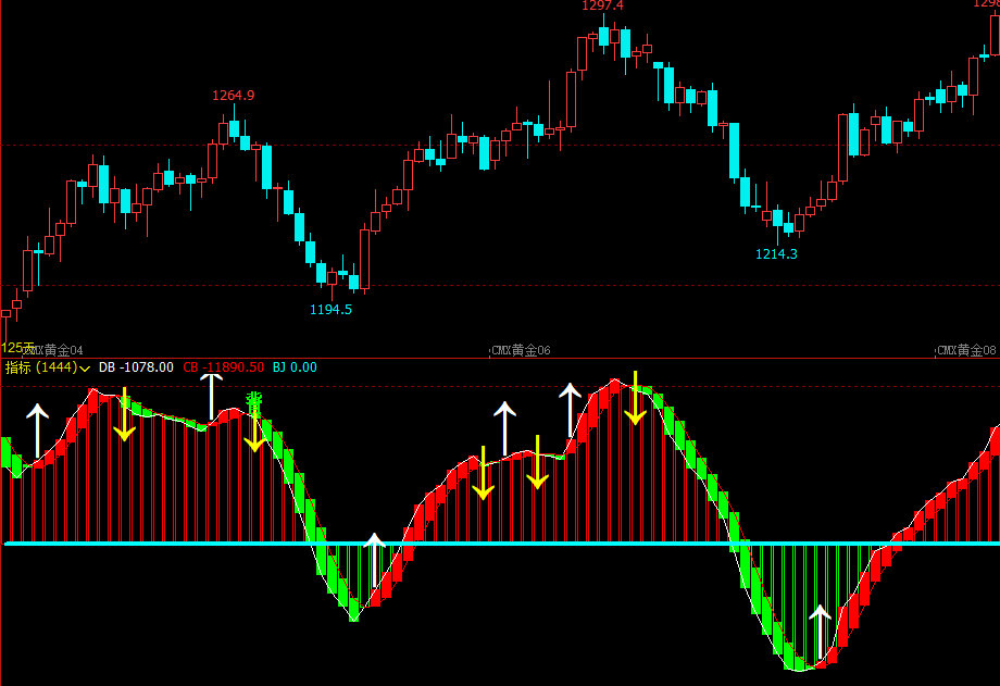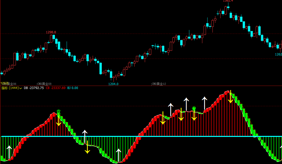 (文华财经白箭头多黄箭头空副图指标 文华财经指标公式 期货软件指标公式)