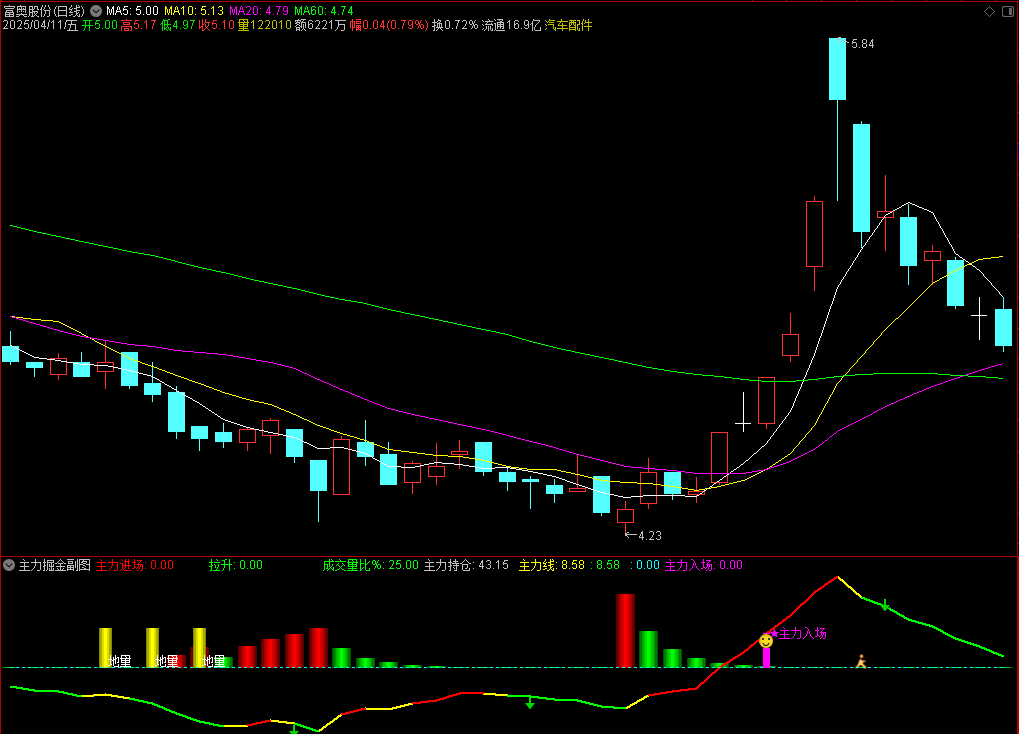 4、高位放量滞涨时,绿色派发信号需优先于吸筹信号作为离场依据;