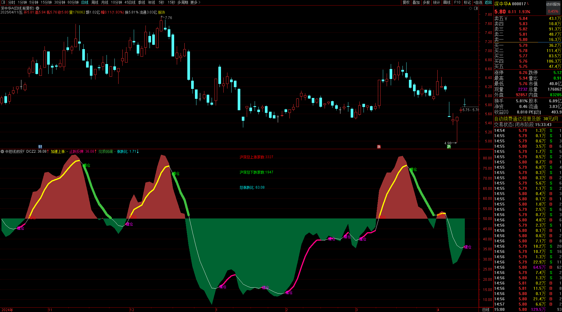 (通达信中短线波段副图选股指标 建加清波段操作简单三部曲)