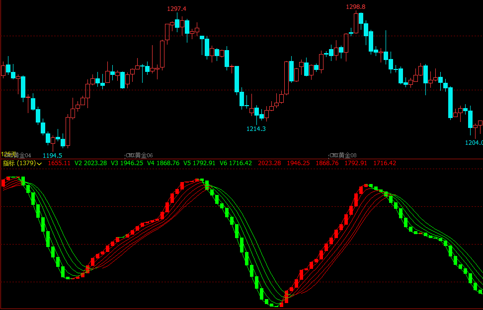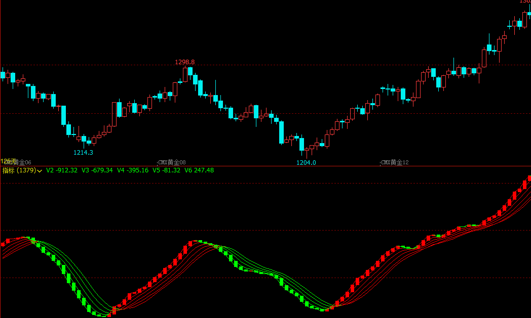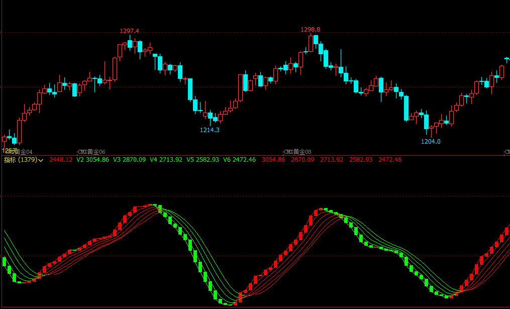 (文华财经红绿彩带副图指标 文华财经指标公式 期货软件指标公式)