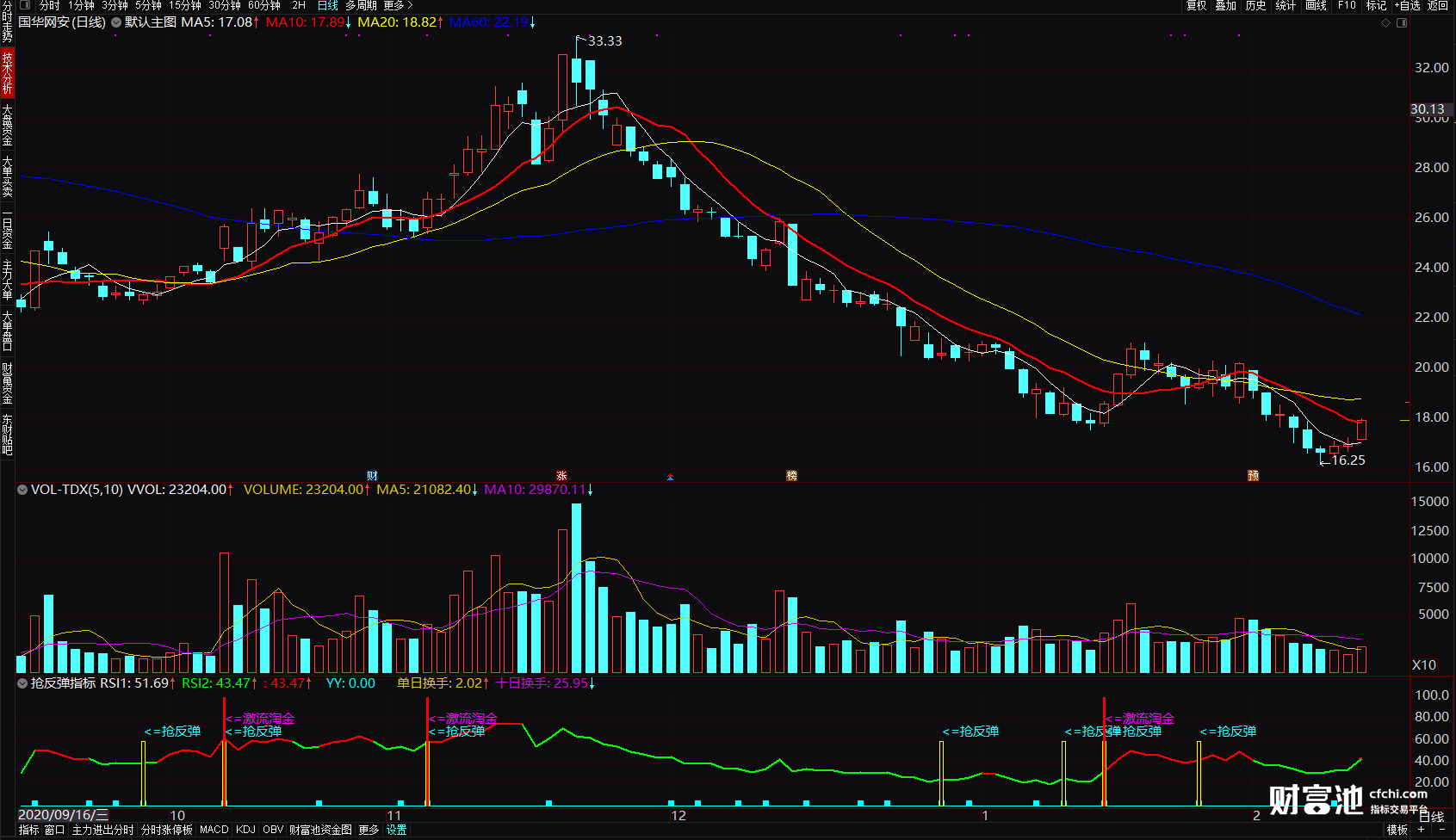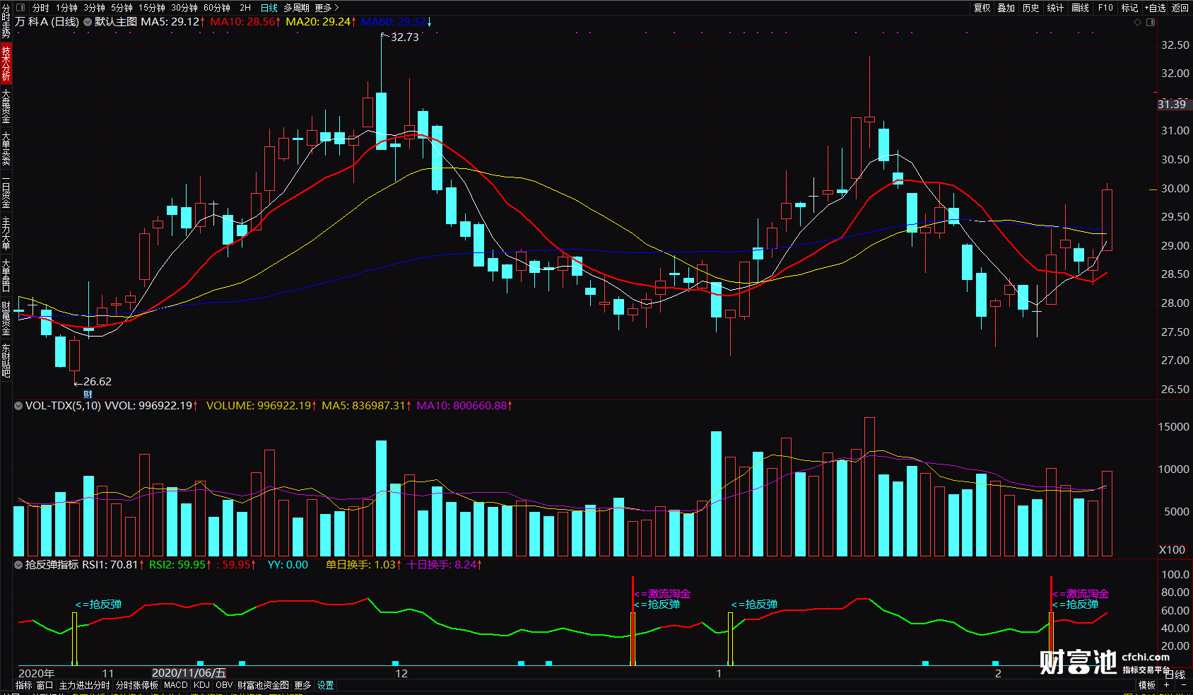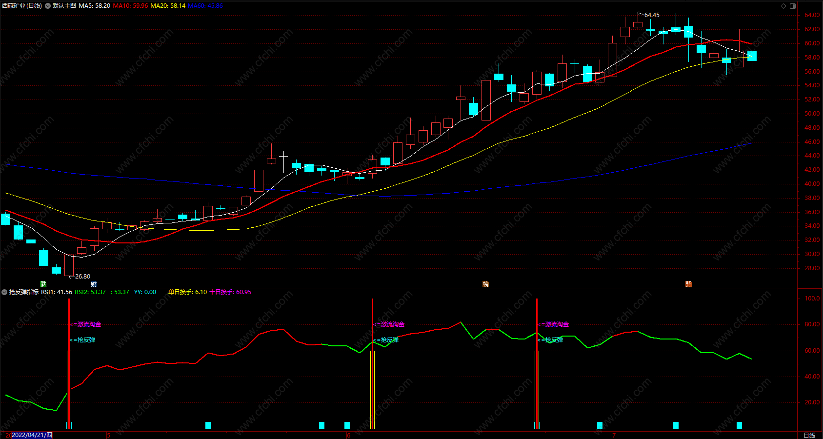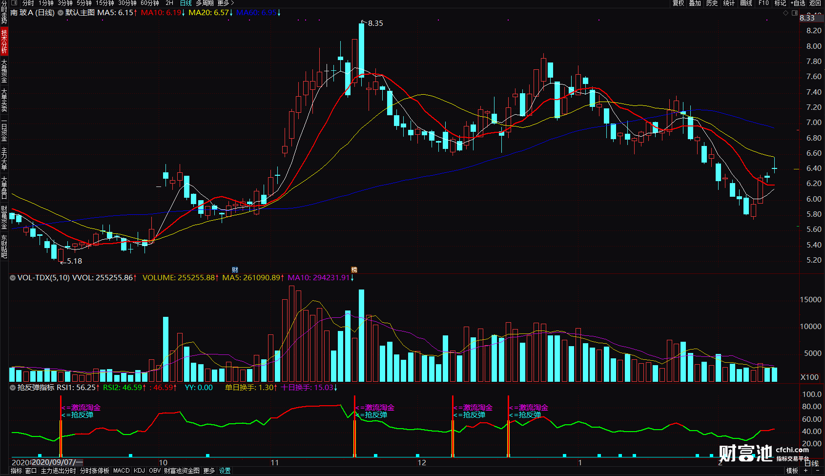 通达信抢反弹指标 激流淘金抓超跌反弹指标 预警触底反弹选股公式 副图 源码