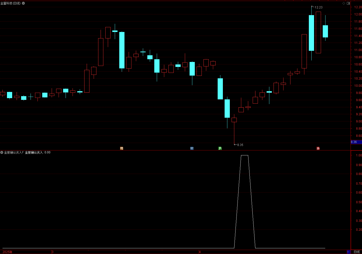(通达信金股确认买入指标信号意在提示股票可能出现买入时机)