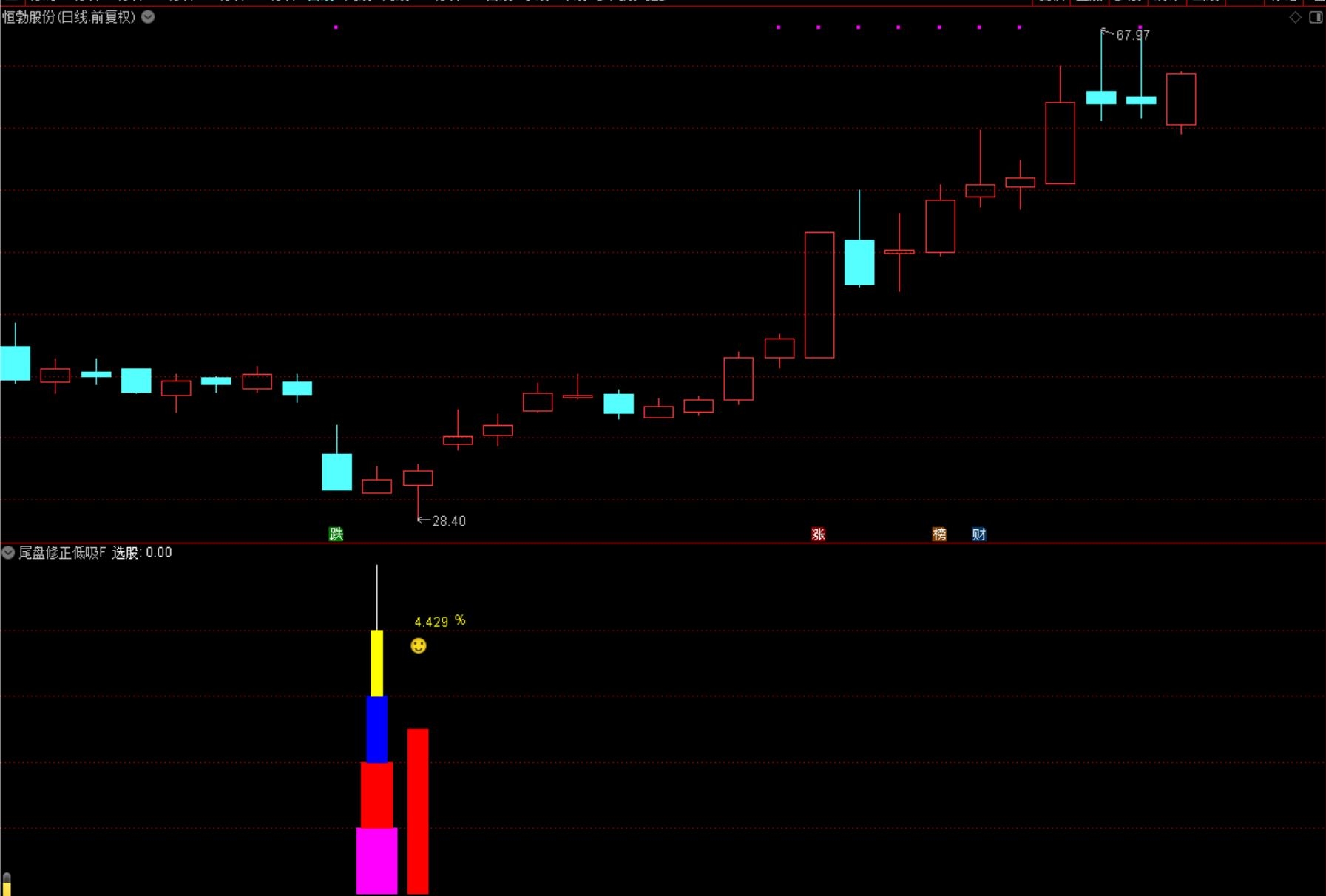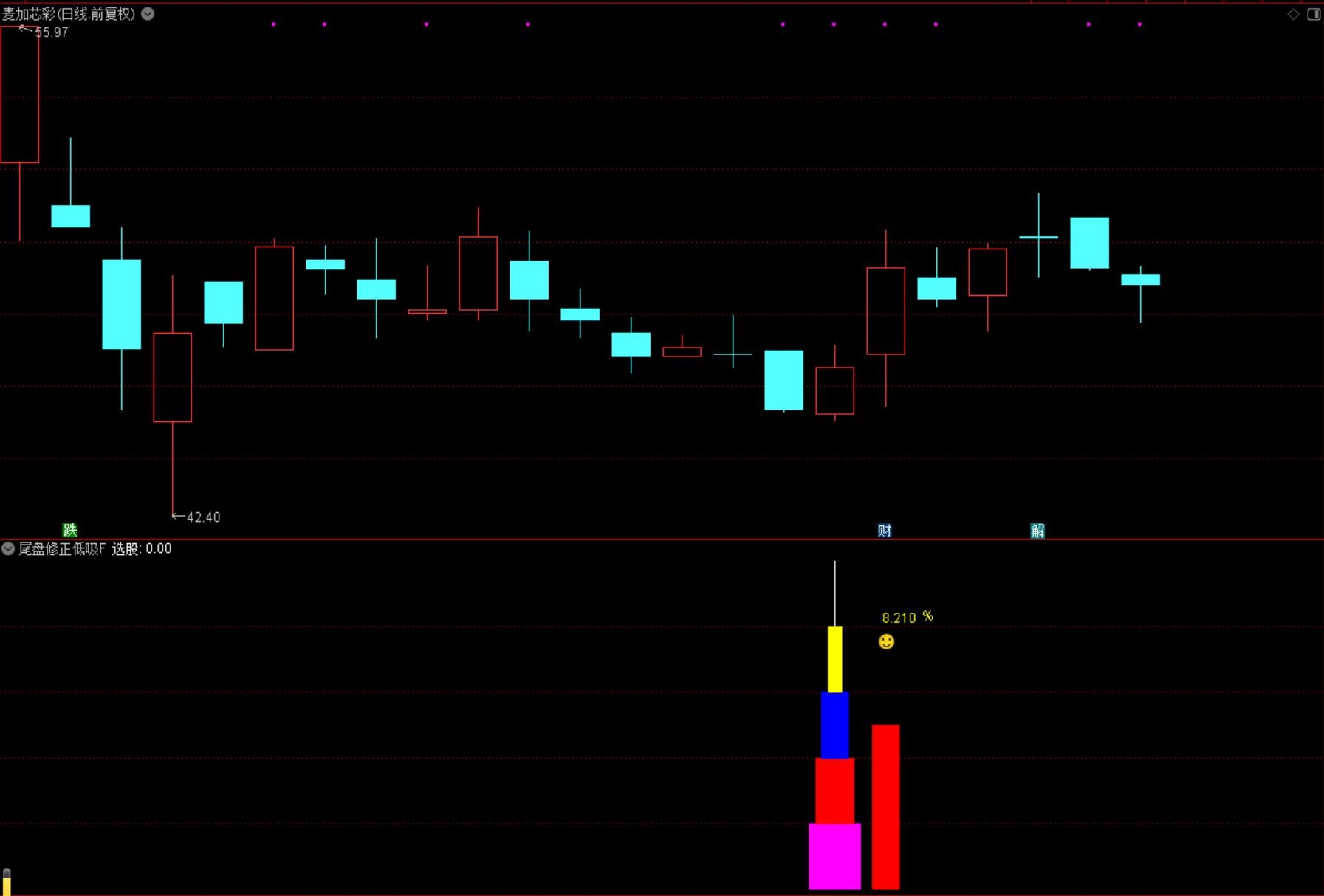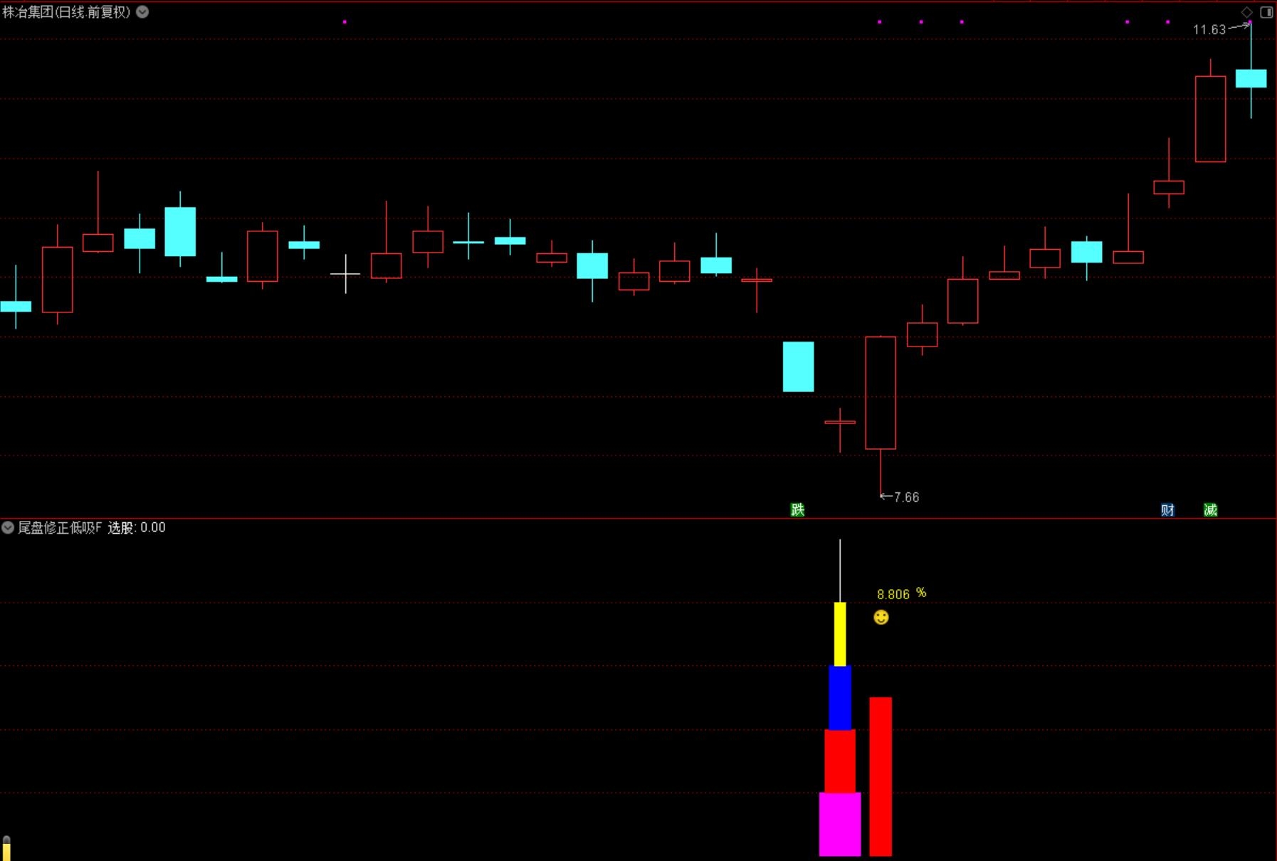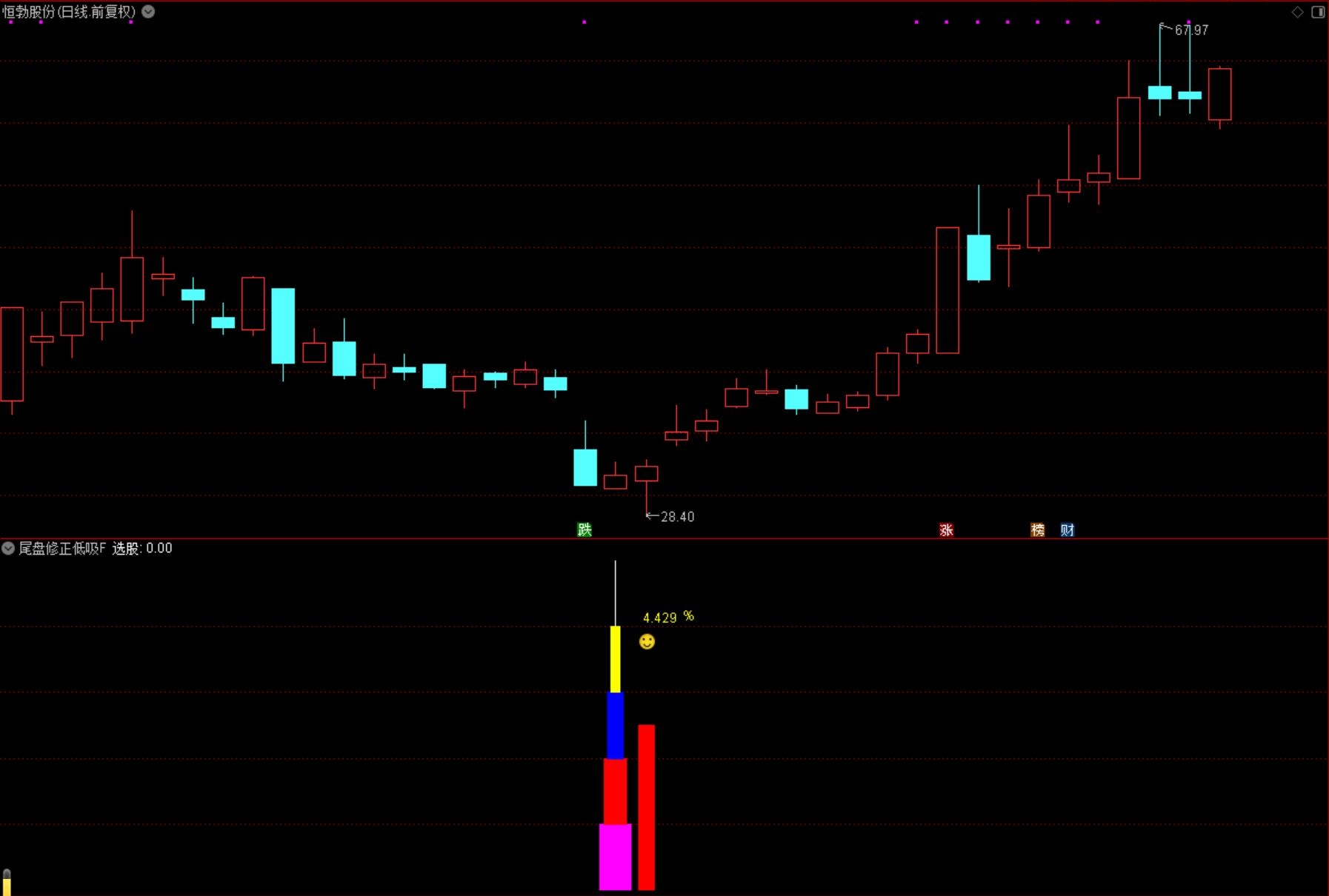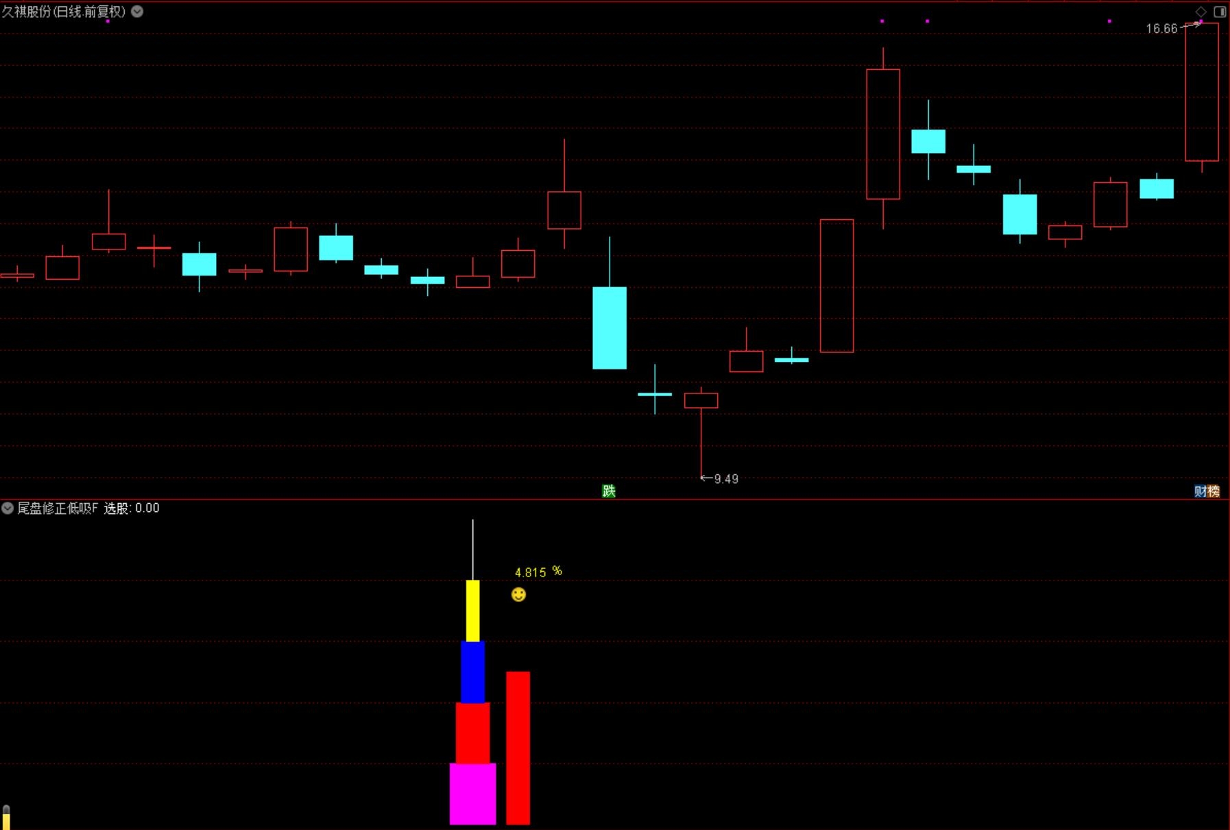 (通达信【尾盘修正低吸】副图选股/捕捉市场拐点信号、手机电脑通用无未来函数 源码指标分享)