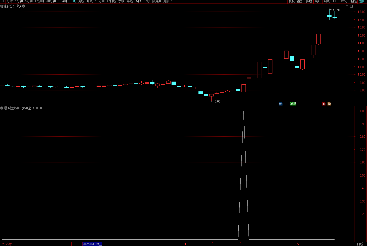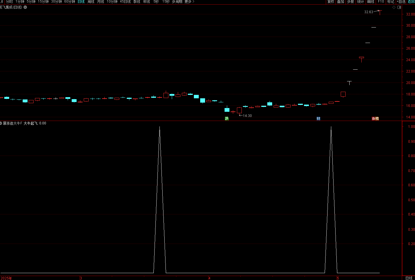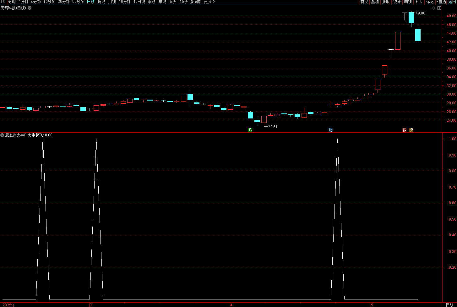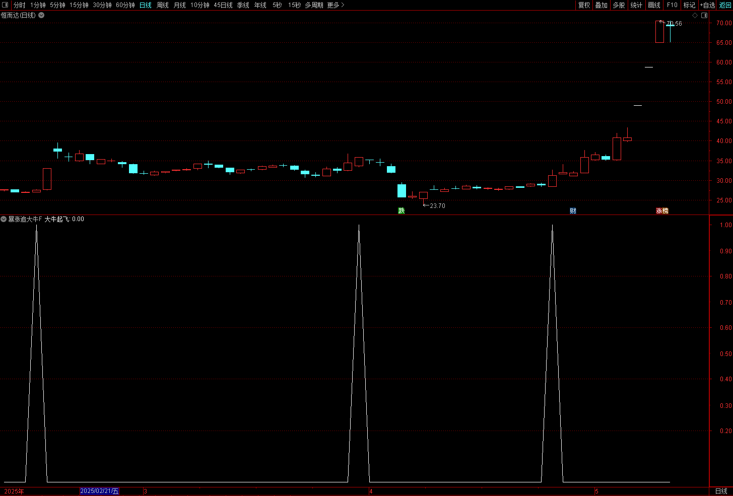 (通达信【暴涨追大牛】副图/选股 旨在捕捉强势股的启动点 指标无未来 )