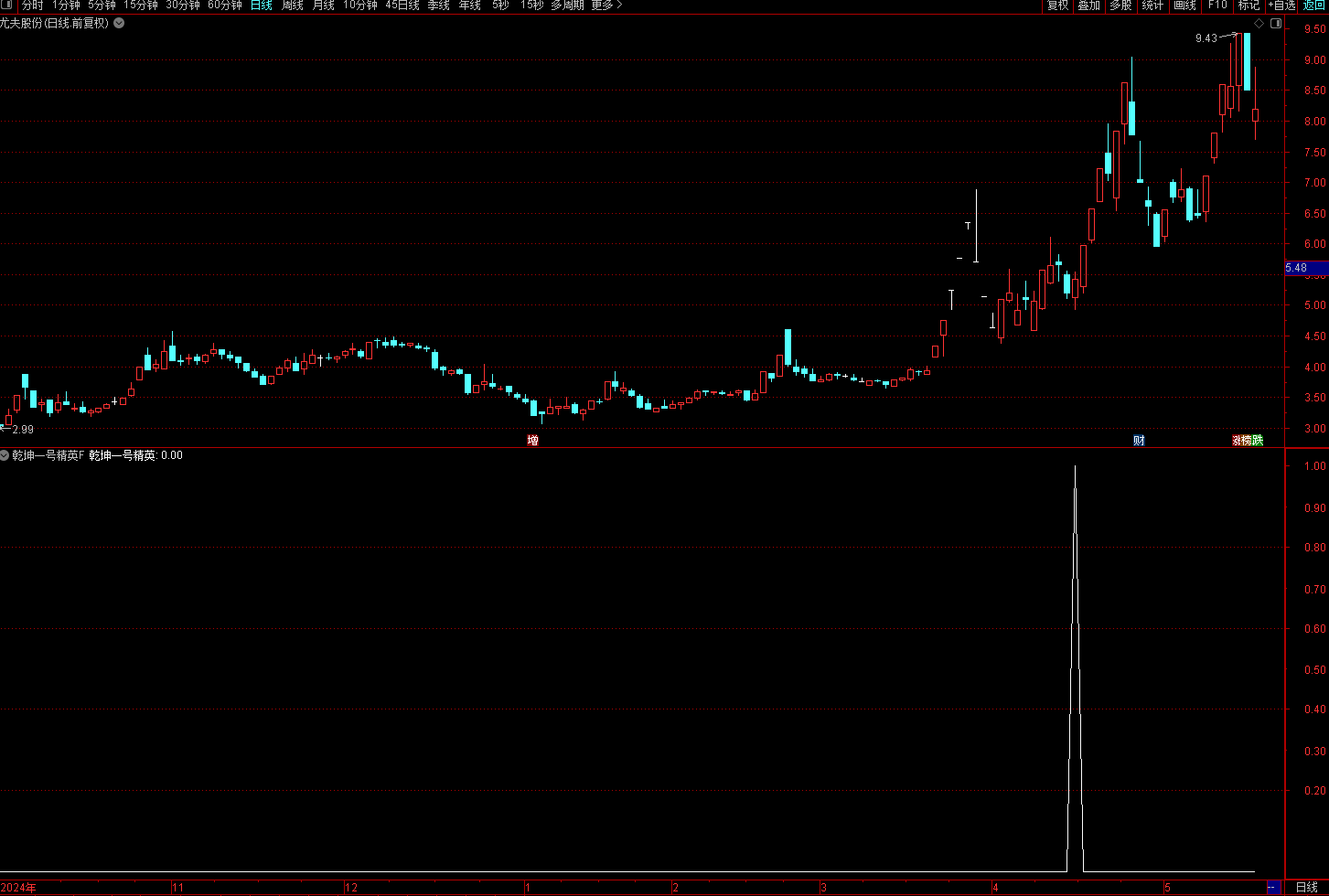 (通达信【乾坤一号精英】副图选股 指标无未来,可放心使用,可在盘中设置预警选股)