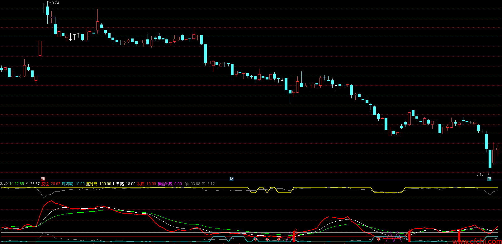 底观察:IF(MN<-4,10,0),colorliblue,LINETHICK2;