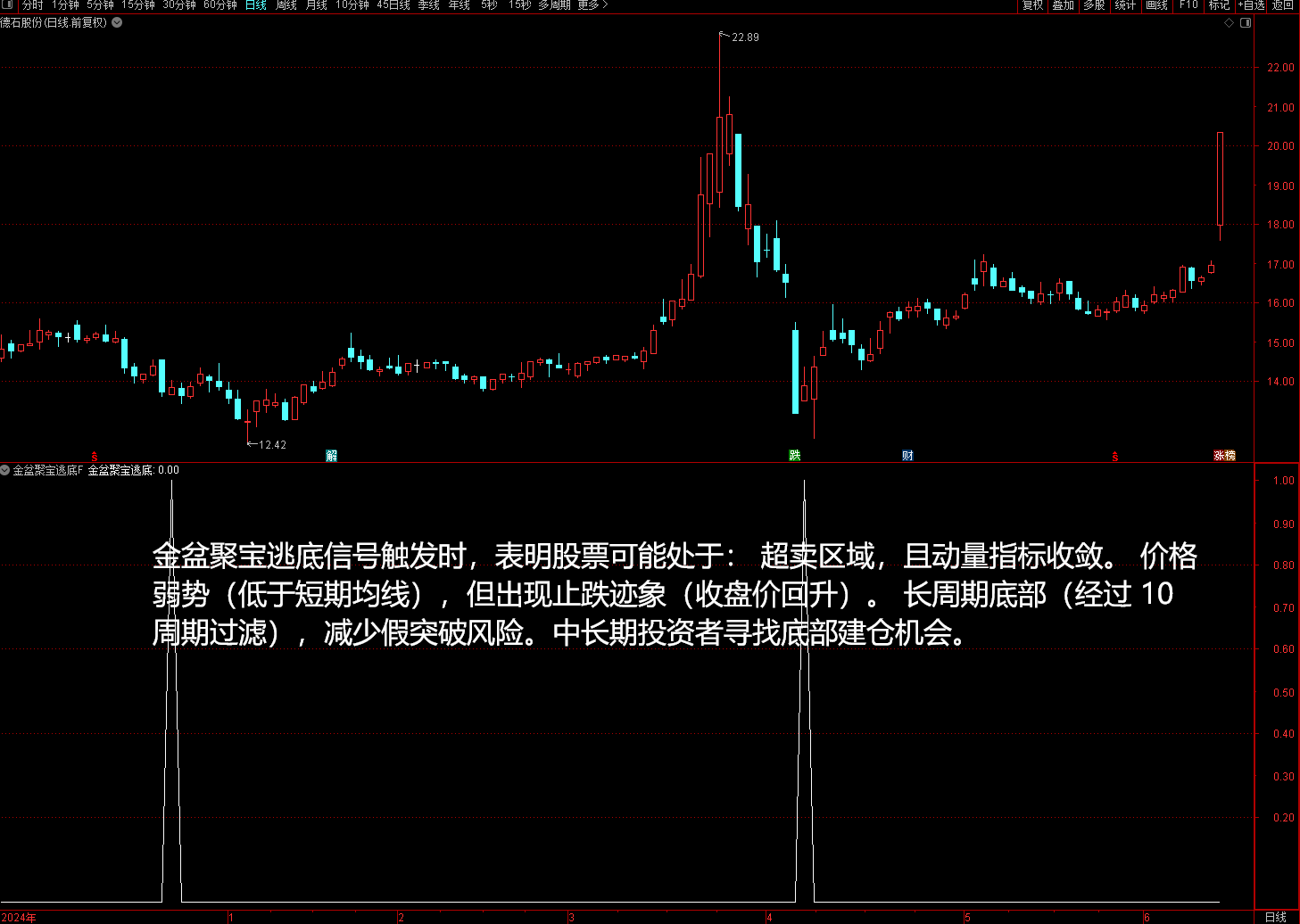 (通达信金盆聚宝逃底主要通过动量分析和价格关系来发现潜在的反弹机会)