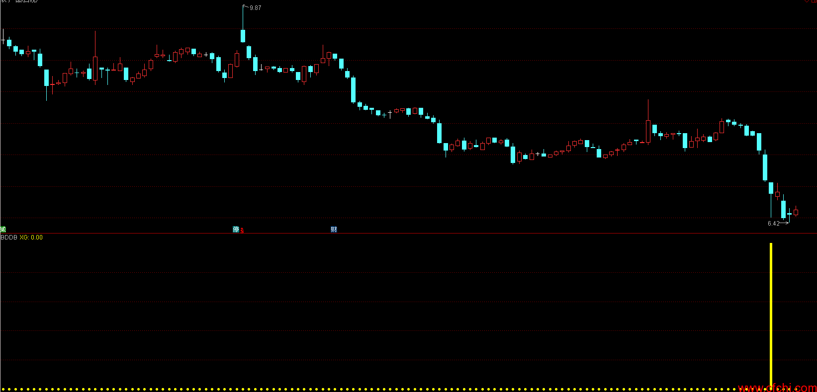 XG:低点=L AND ((C-L)>(O-C) OR (O-L)>(C-O)) COLORYELLOW,LINETHICK5,STICK;