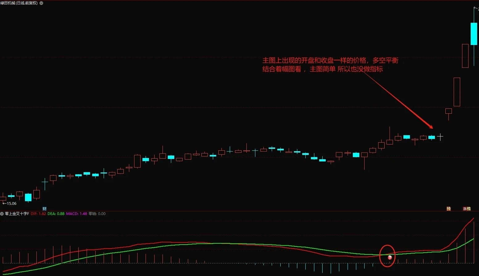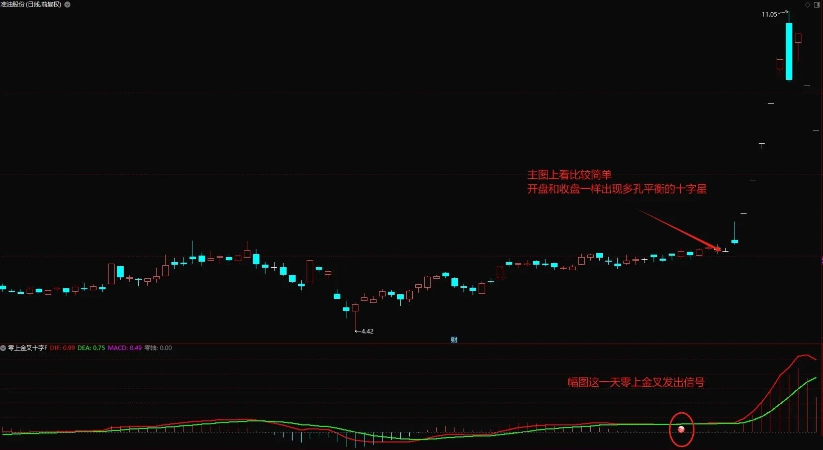 (通达信【零上金叉十字星】副图选股指标,模型优化 变盘点预警策略!源码)