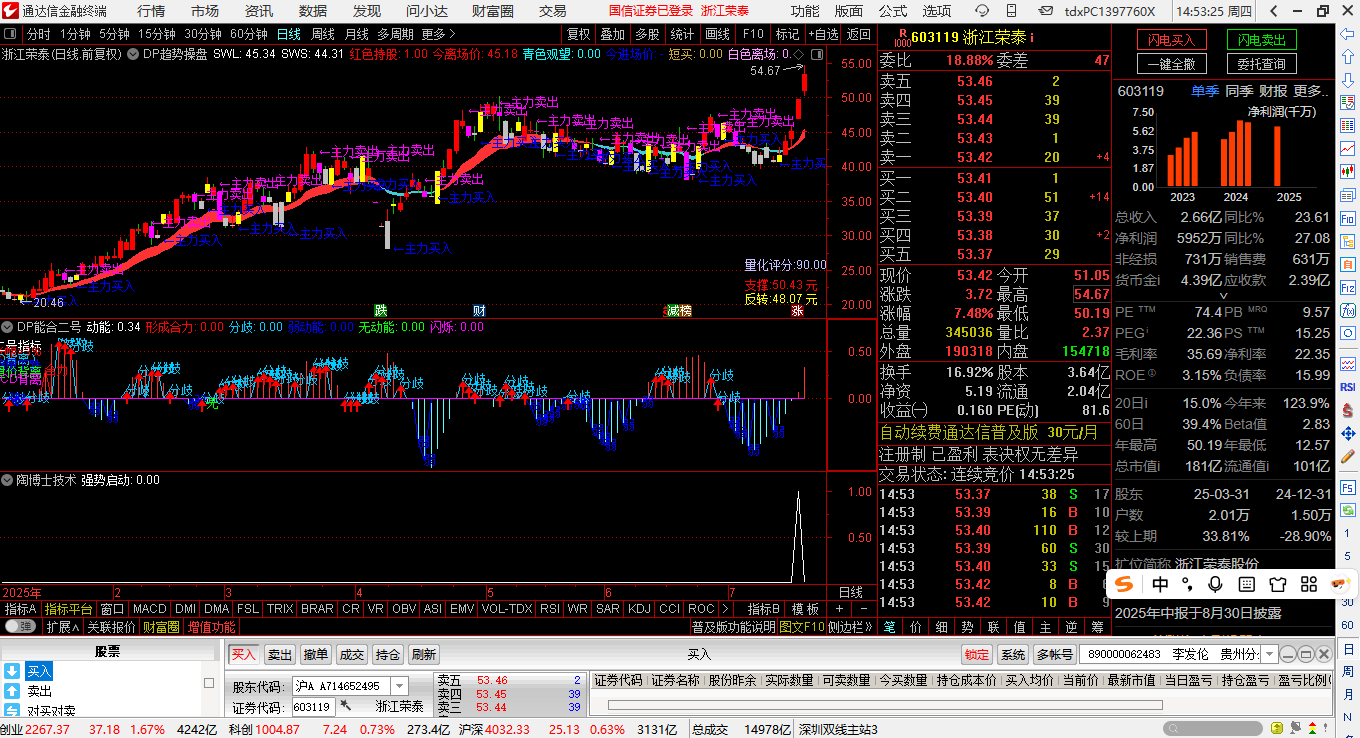 (3)7月16日触发浙江荣泰,T+1日大涨7.61%,充分时间入场。