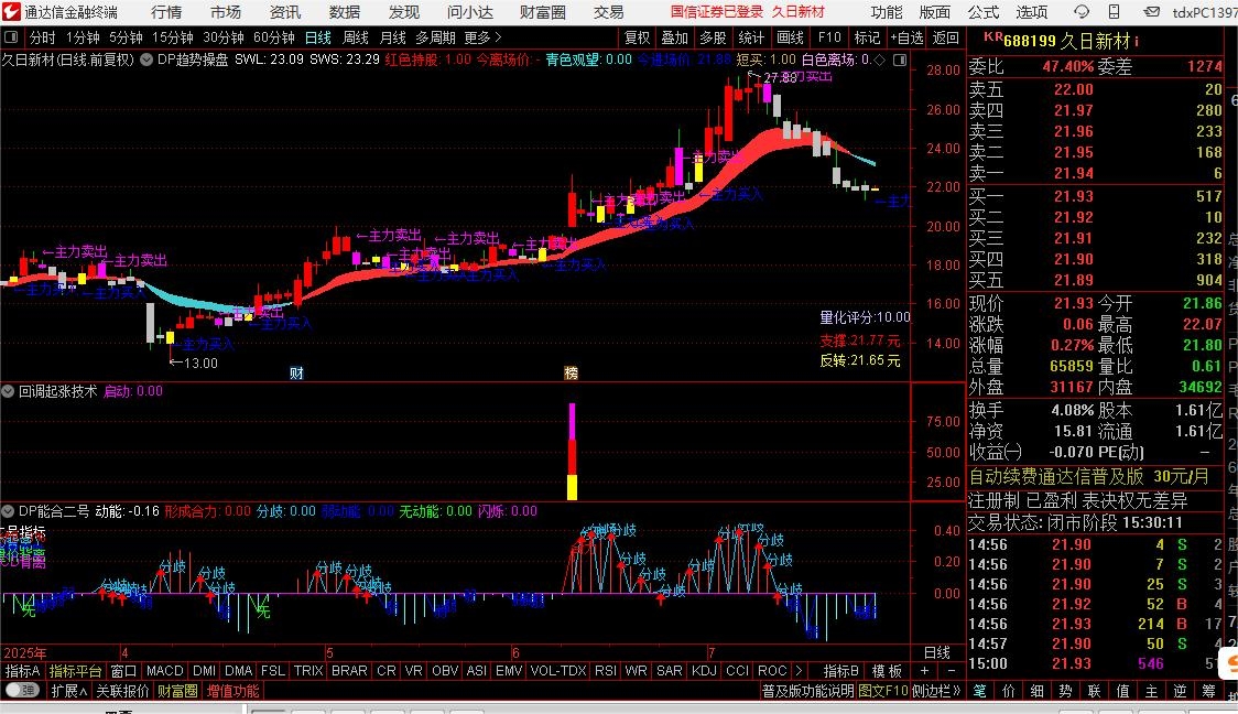 [回调起涨]选股器的核心模块包括均线系统、诱空监测系统、增益系统、洗盘监测系统等。指标特点风险小、收益率高,适合无时间盯盘,波段持股。(注:指标含不来函数,含DP趋势主图指标、含回调起涨副图指标、含DP能合二号副图指标)