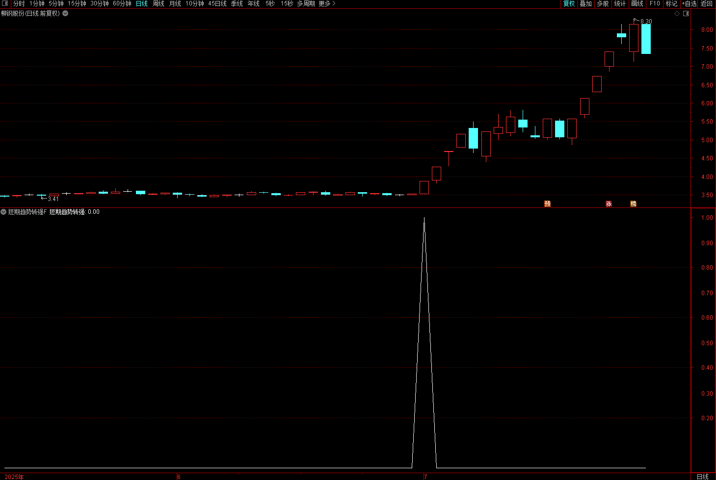 (通达信短期趋势转强指标,核心是捕捉短期均线向上穿越长期均线的强势信号)