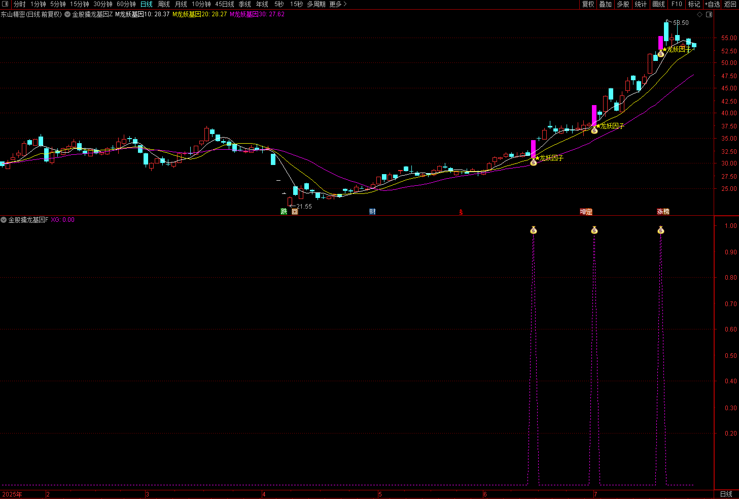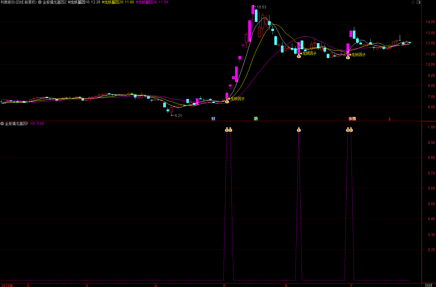 (通达信金股擒龙基因指标——“龙妖因子”是以涨停板起步,按照量能、趋势、强度来做判断)