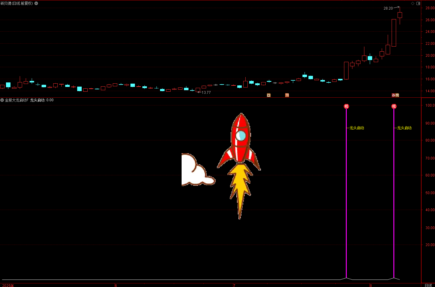 通达信金股大龙启动指标,该公式通过一系列条件筛选,试图识别出短期内出现 “强势启动” 特征的股票,最终输出 “龙头启动” 信号。