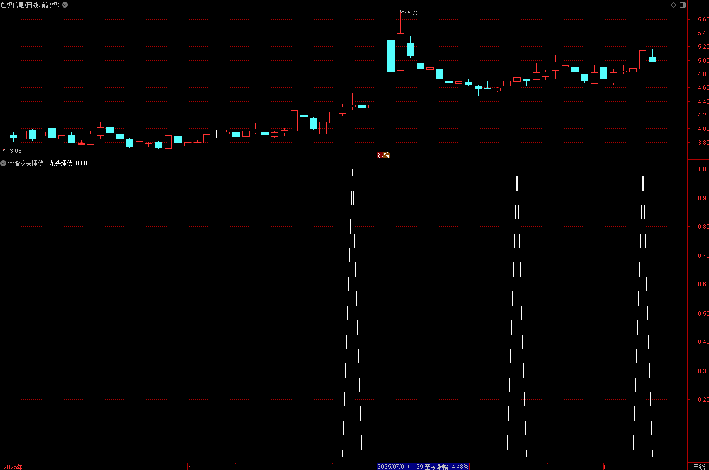 股票分析软件中导入公式后,当 出现“龙头埋伏” 信号时(通常会在图表中显示箭头或标记),可重点关注该股票,结合其所处位置、板块热度等因素综合决策。