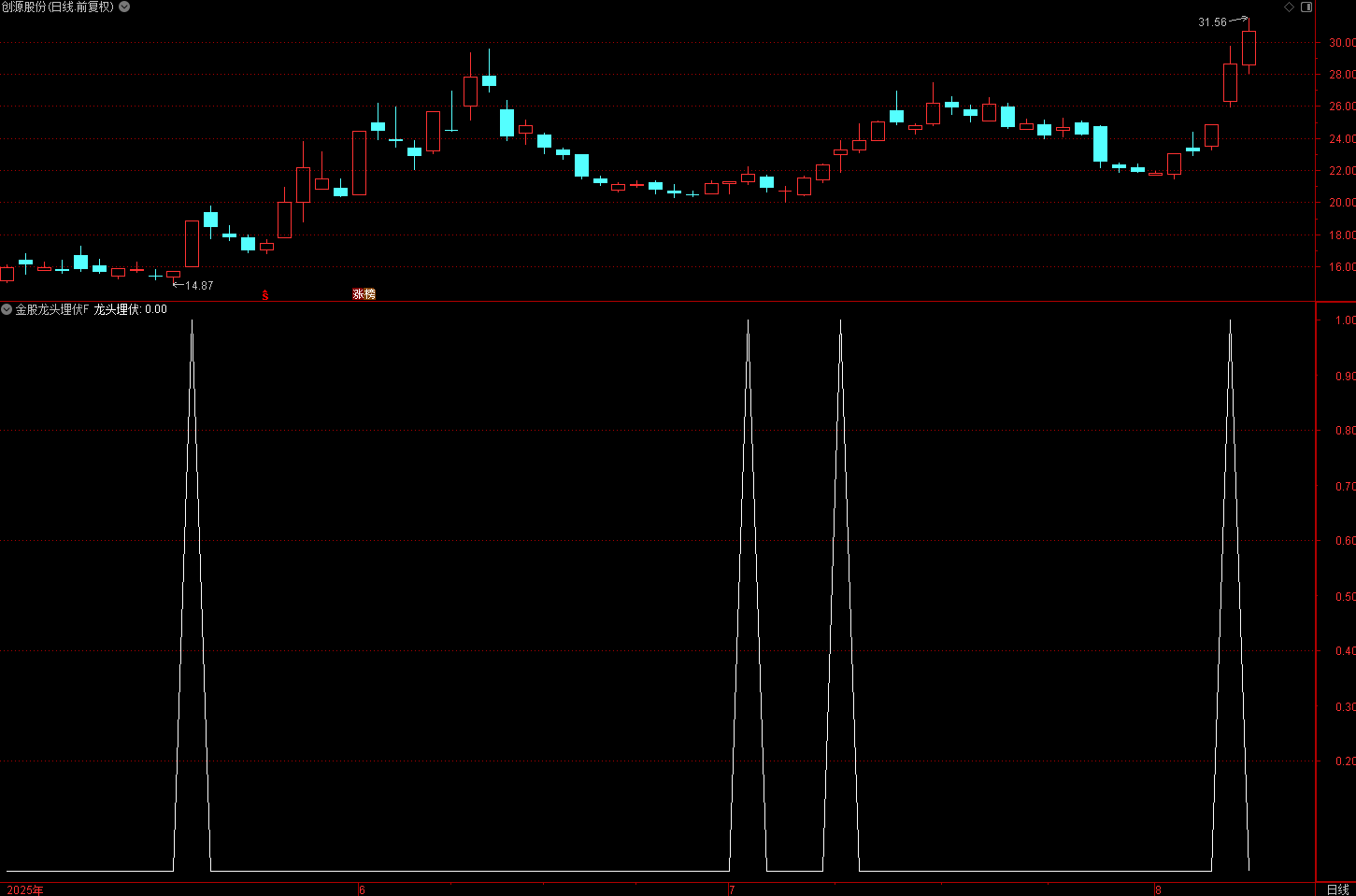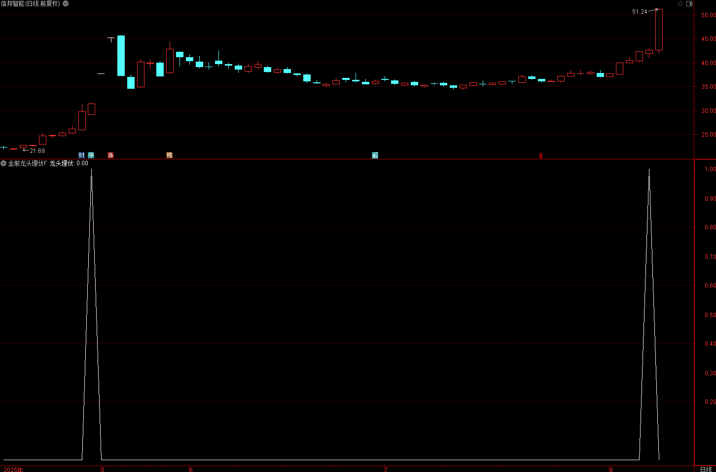 当一只股票满足以下条件时,会发出 “龙头埋伏” 信号: