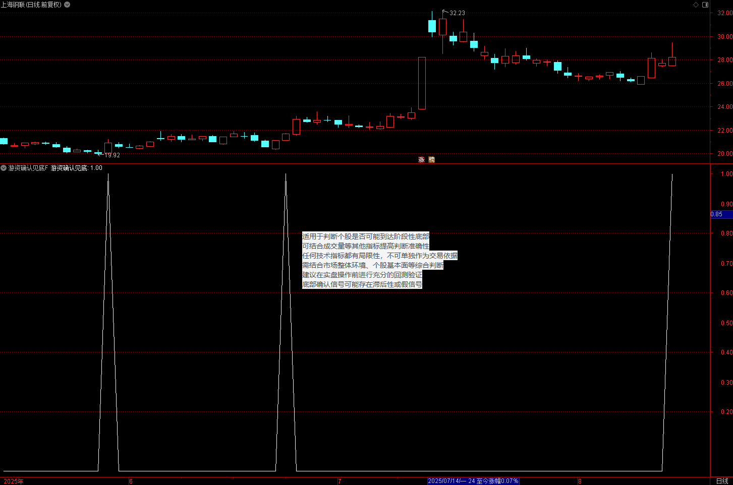 郑重声明:股市具有不确定性,个股走势是无法预测的。公式软件描述中的案例截图仅代表过去,仅供参考学习研究之用,不构成投资建议或未来保证,也并不能代表未来,依此操作,责任自负。股市有风险,入市需谨慎。