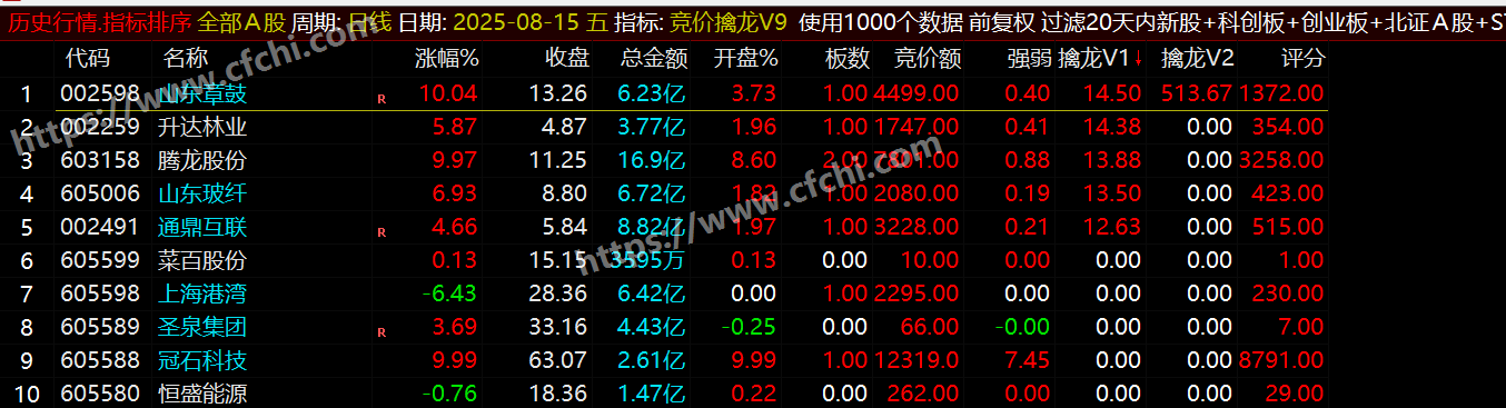 5、这几个函数不算是未来函数、不影响当天的数据,9点25分点击排序后,竞价擒龙数据全天不变,