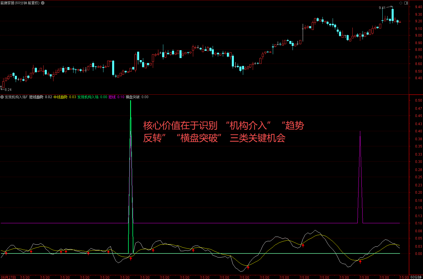 (通达信发现机构入场指标,量价分解、均线趋势、多周期强弱、资金入场信号四大维度构建分析工具)