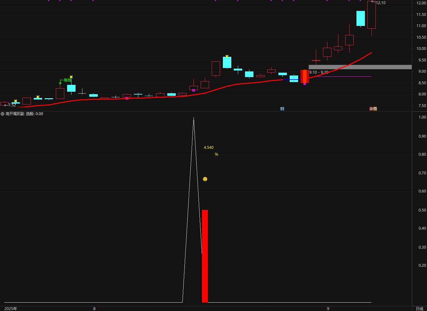 通达信〖高开阳尾盘阳买〗策略 小赚积累大赚机会 本策略聚焦尾盘阳买信号,通过跳空高开形态捕捉强势股机会。 尾盘买入后次日冲高卖出,实现小赚积累与大赚突破的平衡。 指标筛选的个股均呈现当天跳空高开阳线特征,符合资金强势进场逻辑。 为何竞价跳空高开? 资金极度看好是核心动因。即便部分个股次日未立即大幅上涨,其后续上行趋势概率依然较高,形成长期盈利潜力。 使用方法: 每日14:55启动选股流程,锁定尾盘买入点,次日冲高时完成卖出。 指标使用CAPITAL函数,介意慎用。