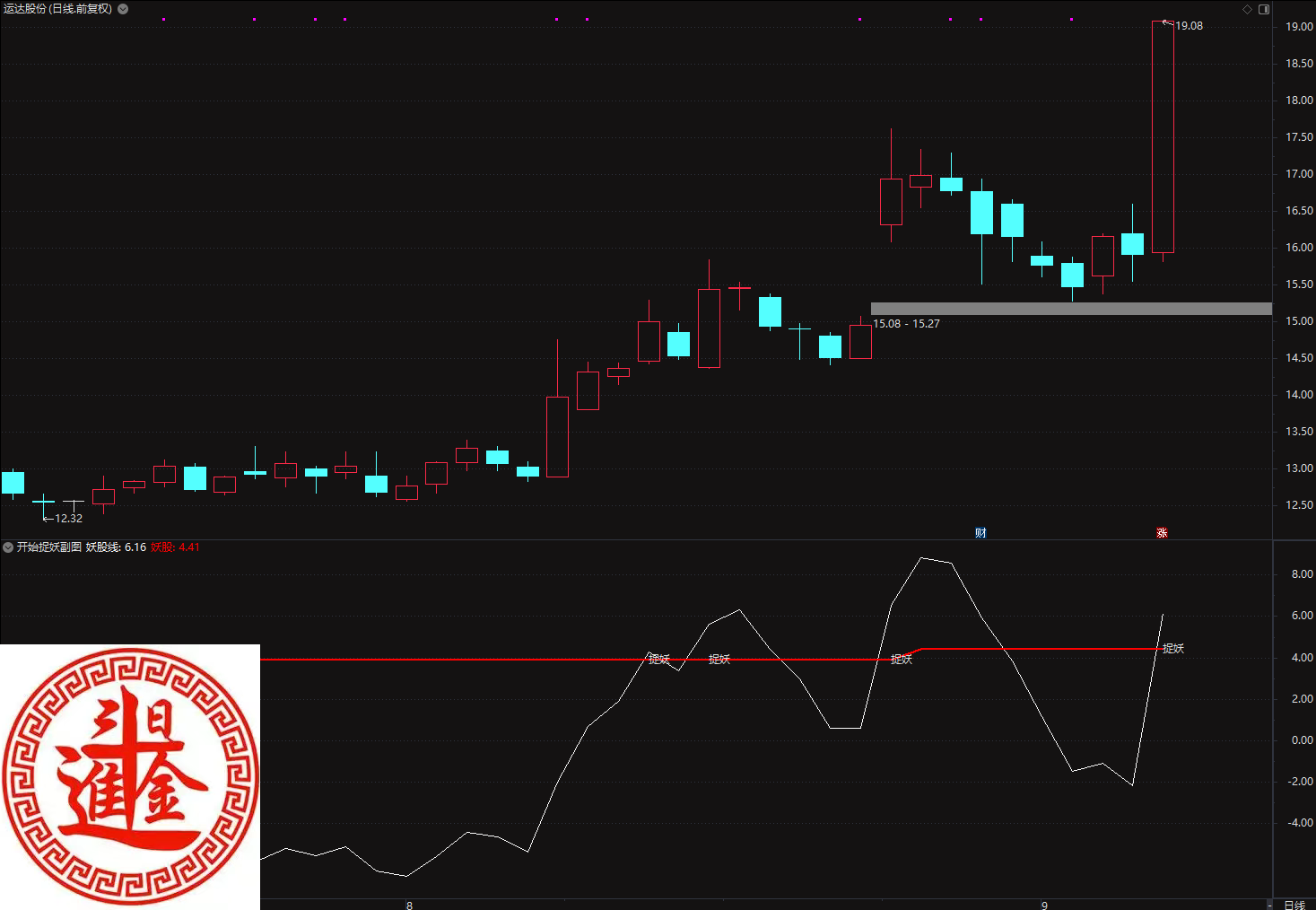 (通达信日进斗金之开始捉妖副图选股指标 两条妖股线可以识别妖股和强势股 )