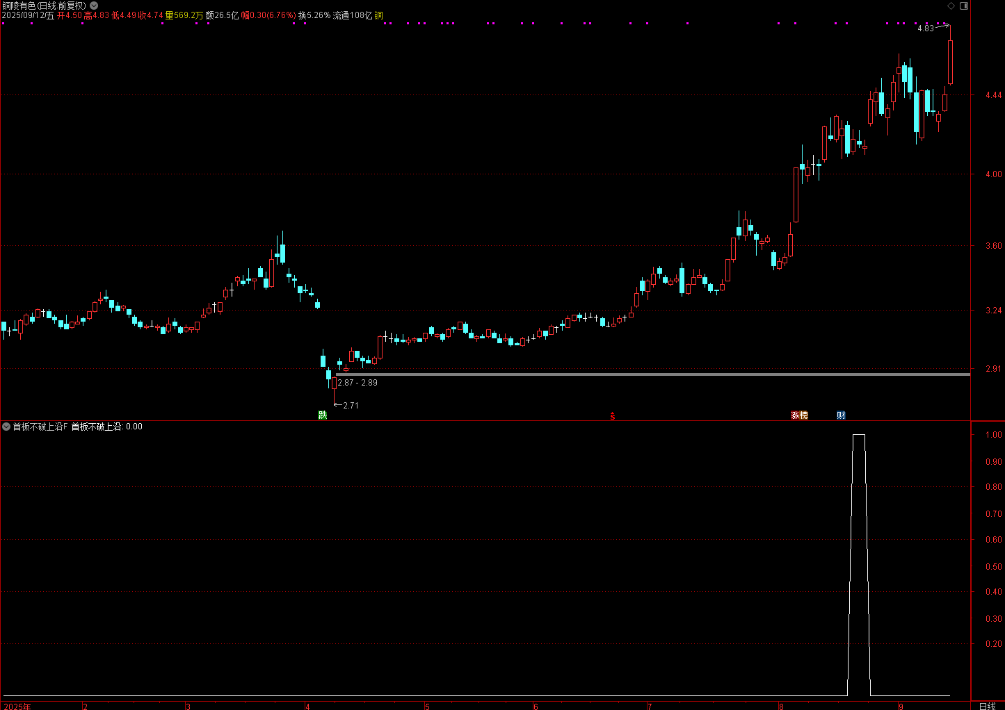 通达信首板不破上沿该公式用于筛选出满足 "首板不破上沿" 条件的股票,主要针对股票的涨停板后走势进行分析,寻找具有特定形态的个股。
