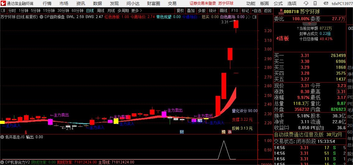 3. 触发信号当日趋势逐步加强,高走的概率非常大,目标是当天就能稳稳获得3-5点利润,哪怕次日出现回调,也不会手忙脚乱。(称为风险预备利润)