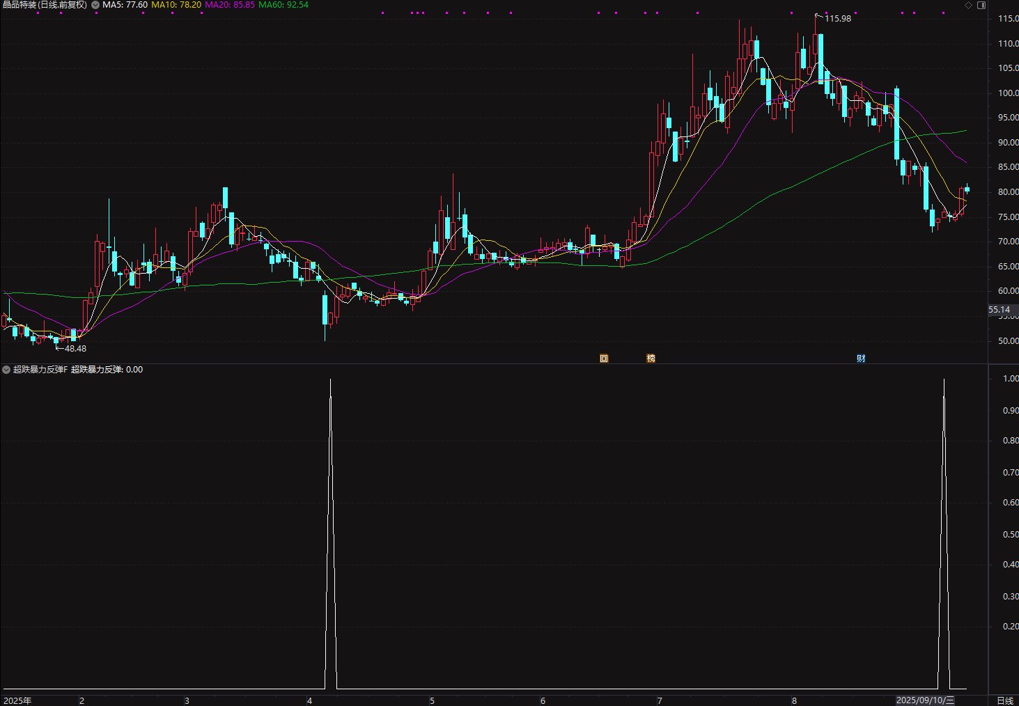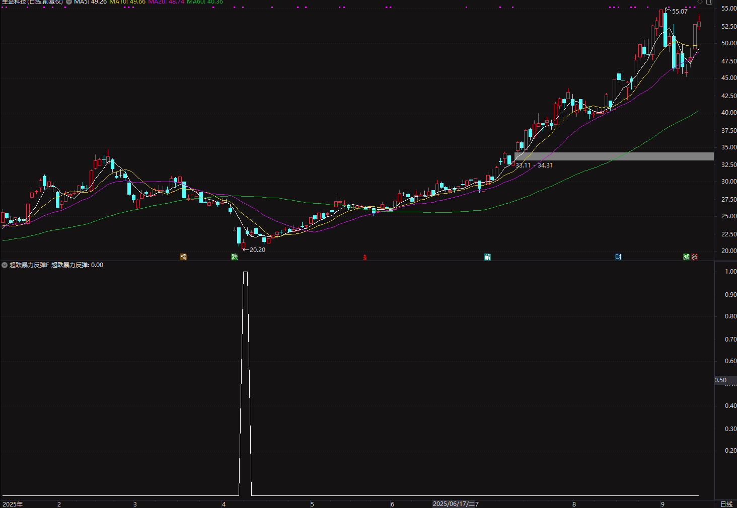 (通达信超跌暴力反弹指标当股价长期下跌、市场一片绝望之际,一根放量大阳如利剑划破阴霾)
