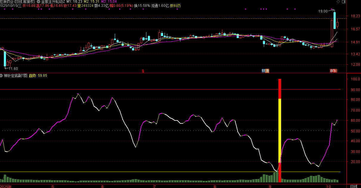 (通达信神针定副图/选股 红黄红三色预示趋势转折点)