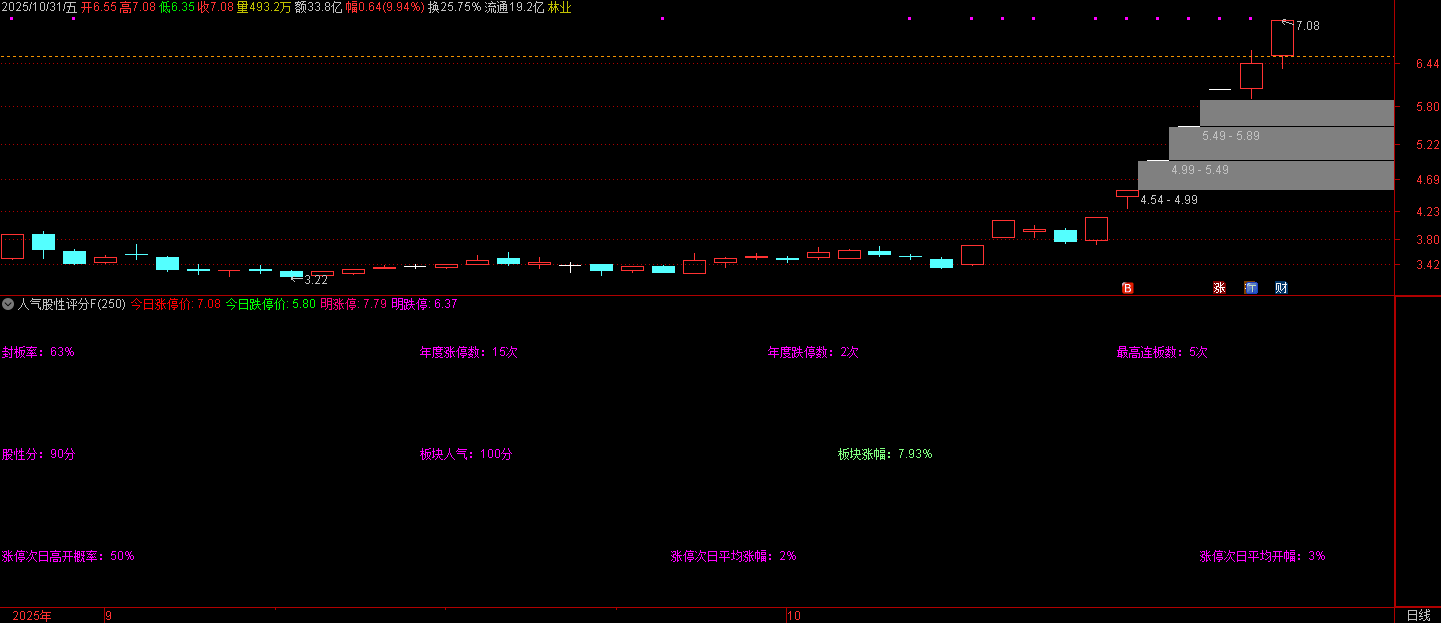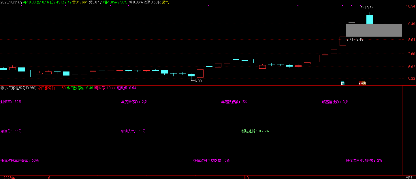 (通达信〖股性评分+封板率+板块人气〗副图指标 )