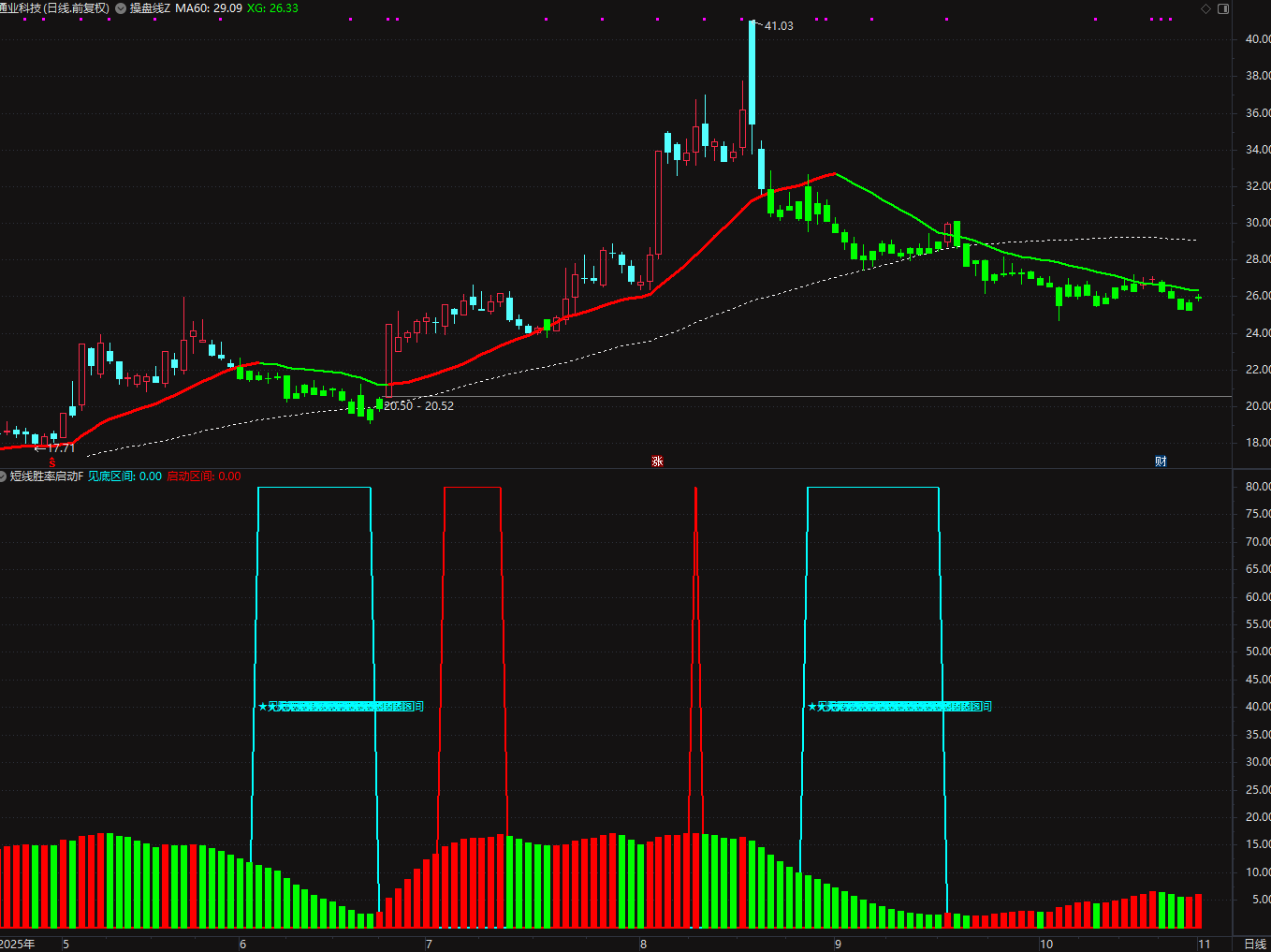通达信〖AI量化分时〗主副图分时指标,捕捉股票在分时图上的强势启动信号,源码