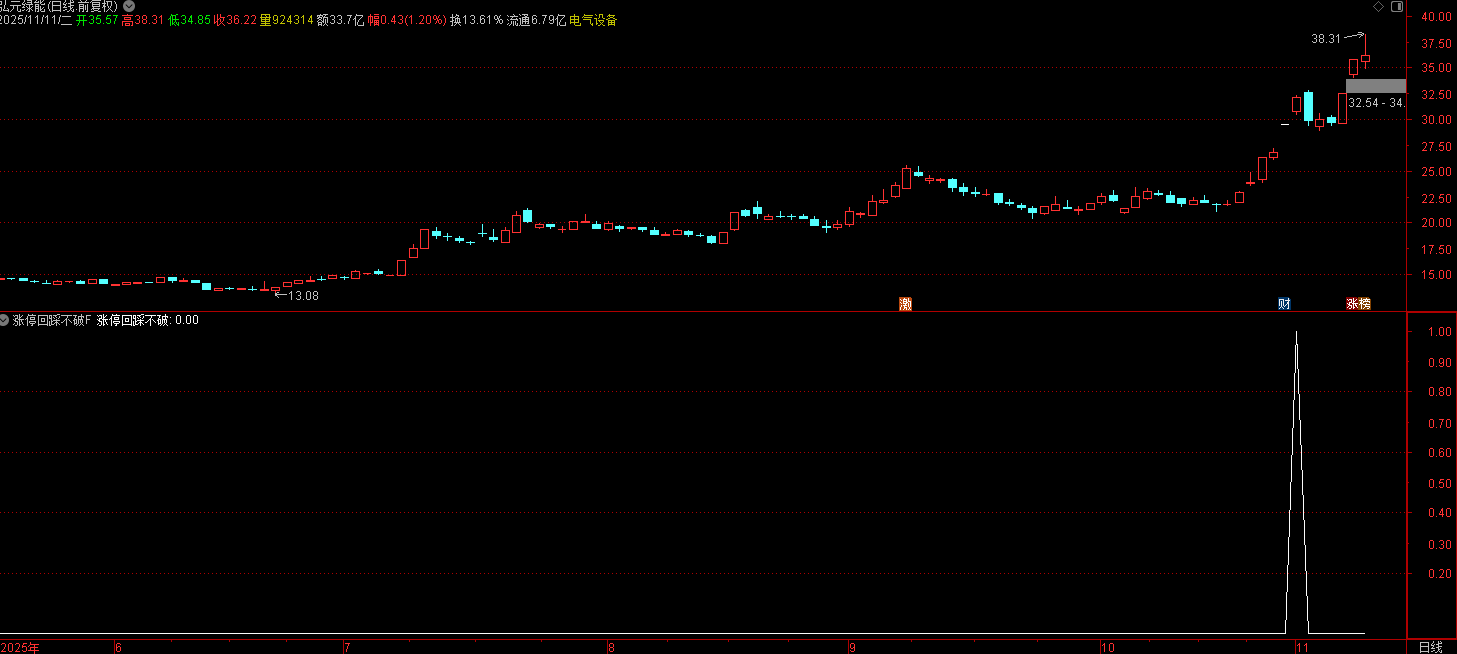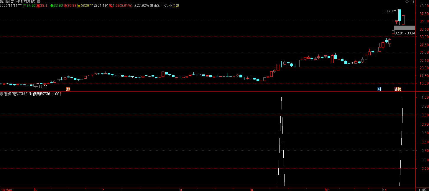 2. 回踩过程(关键)幅度:回调幅度浅,通常在涨停板实体范围内或略破实体但不破开盘价。回调越浅,主力控盘越强。时间:回踩时间不宜过长,通常3-5个交易日为佳。时间越短,爆发力越强。量能:回踩过程中成交量明显萎缩,说明抛压轻,筹码锁定良好。