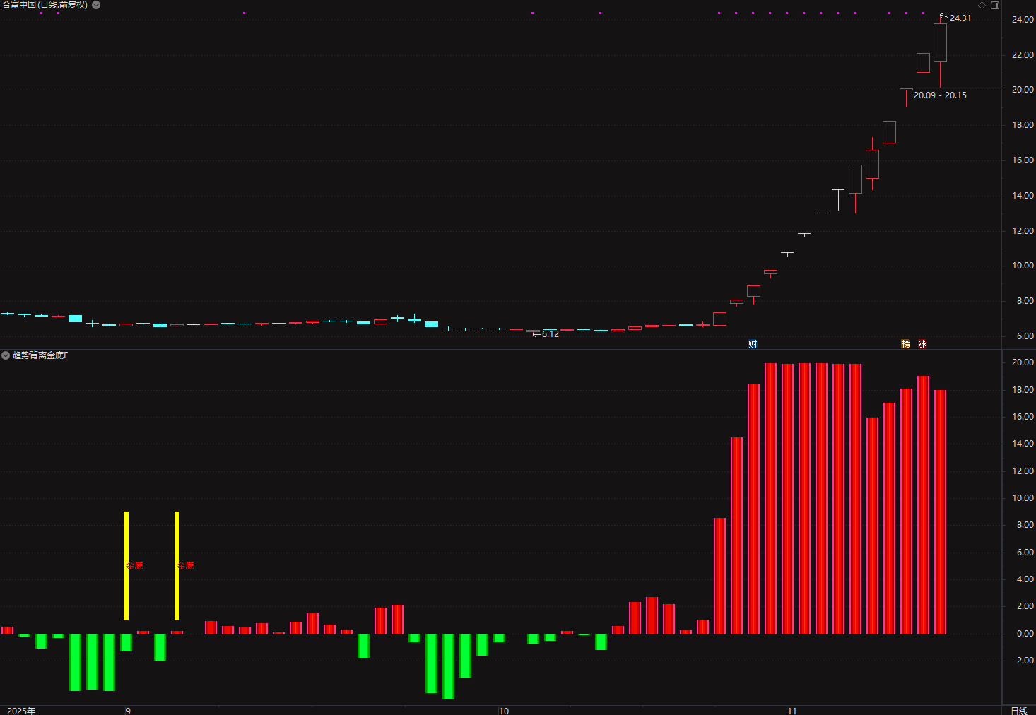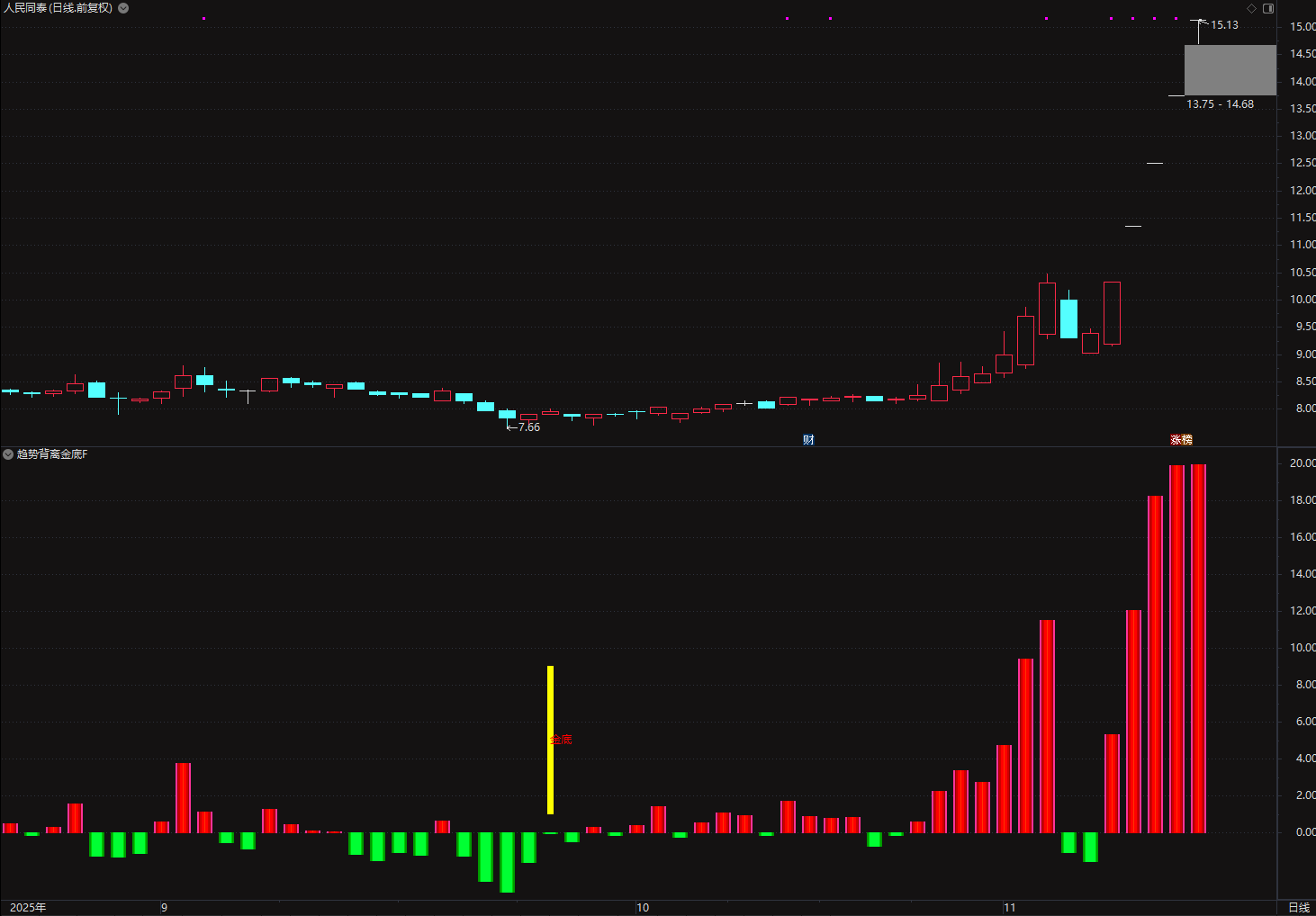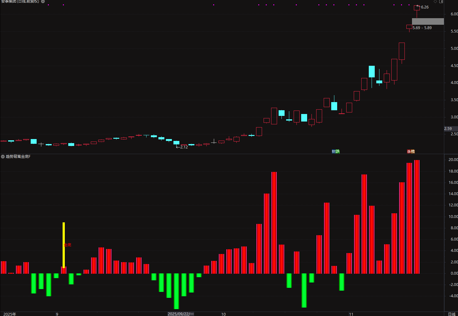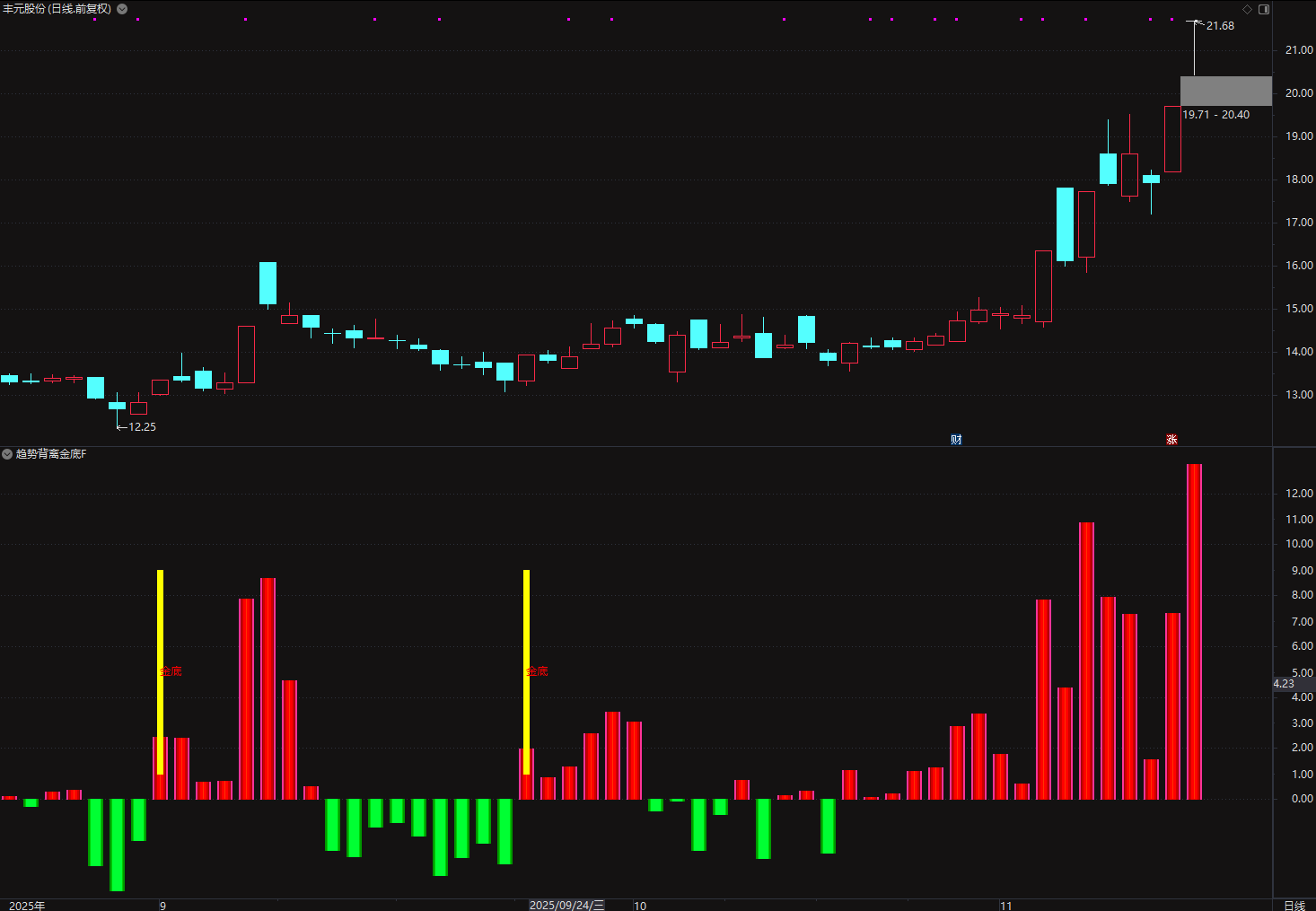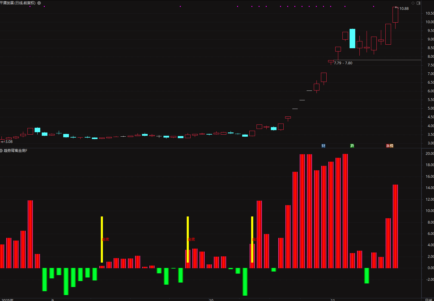 (通达信〖趋势背离金底〗副图/选股指标 超跌反弹信号捕捉 )