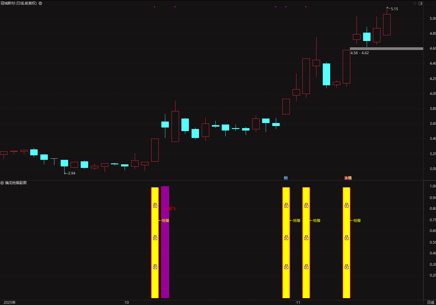 指标通过筹码分布分析,精准计算庄家成本区与获利筹码比例,结合突破成本区特征,筛选出具备龙头潜力的优质个股。