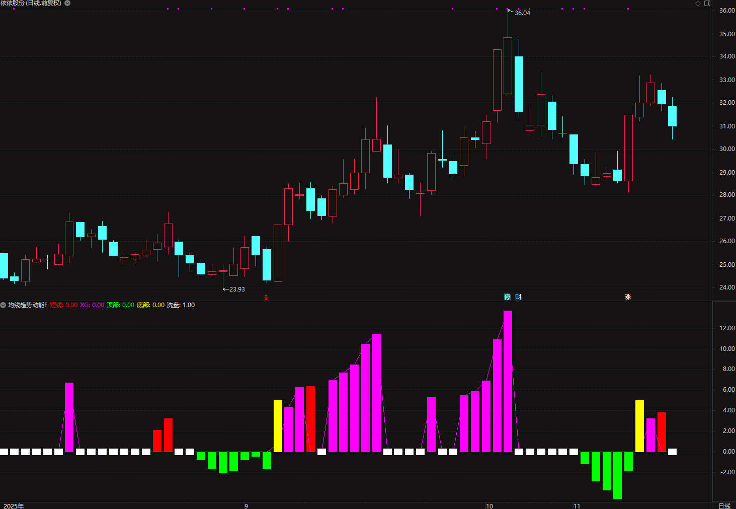 绿色信号:动能线跌破零轴时,表明进入调整阶段。
