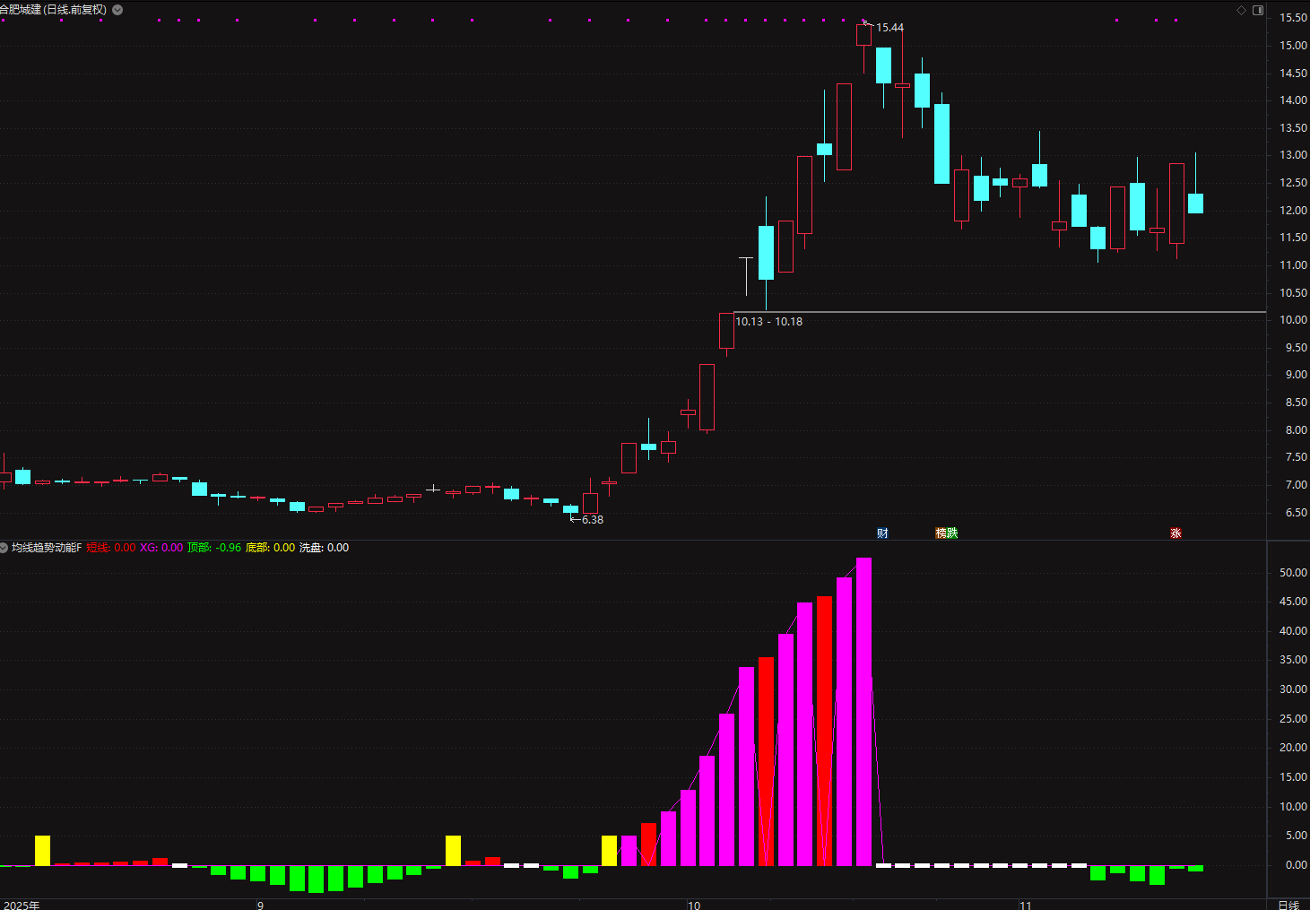 红色信号:当动能线向上突破零轴且持续走强时,预示短线机会;