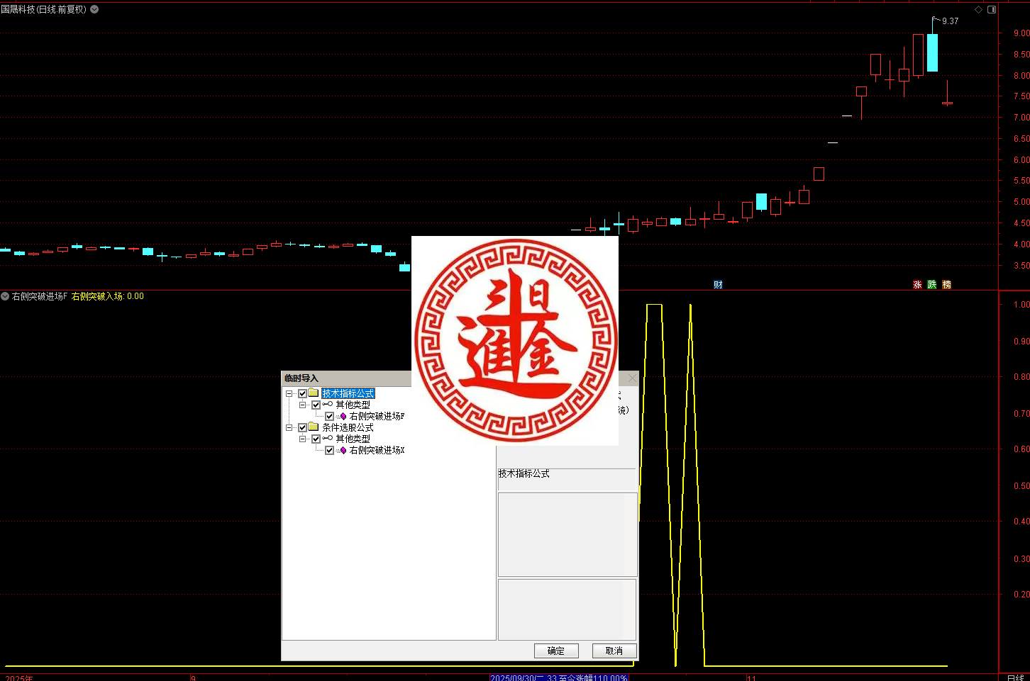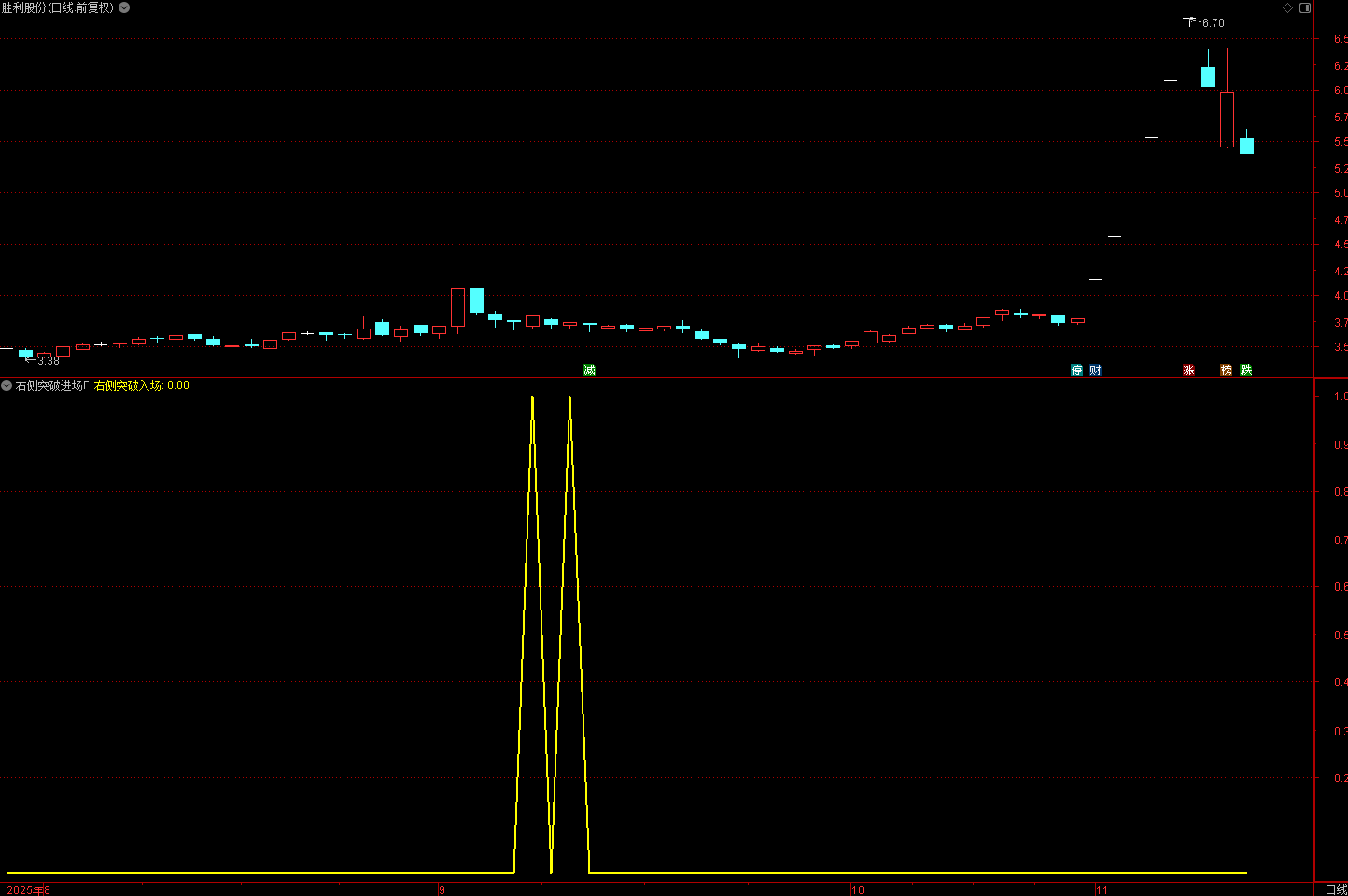指标通过量价配合识别股票右侧突破买点。主要监控成交量异动、价格通道突破和主力资金动向,当成交量出现特定角度拉升、价格突破通道上轨且主力有明显动作时产生入场信号。