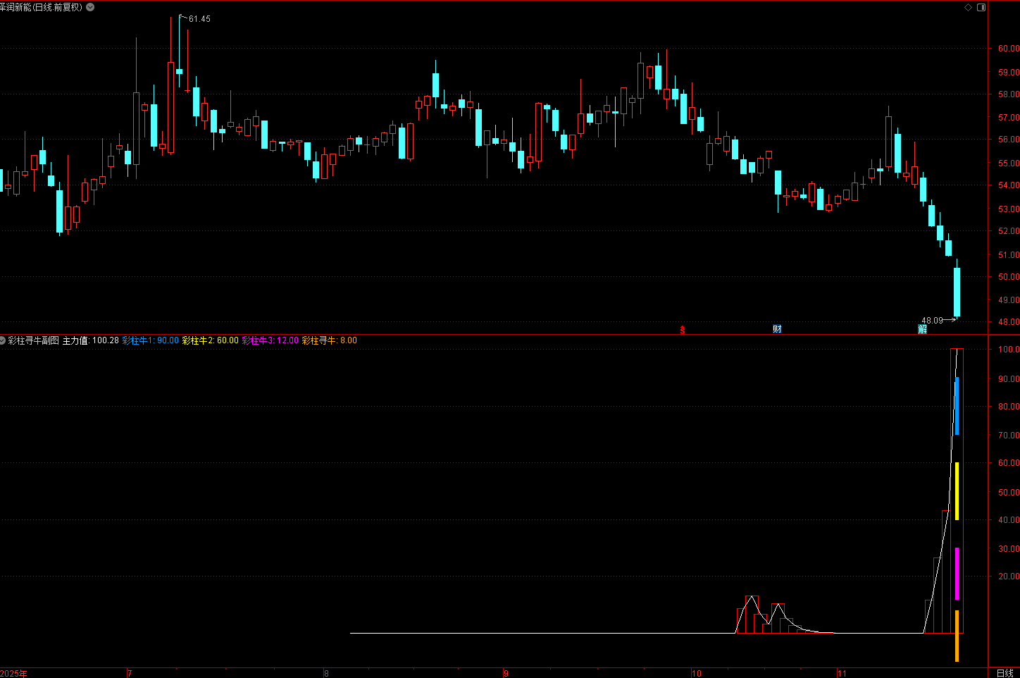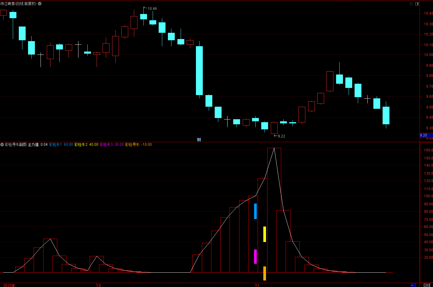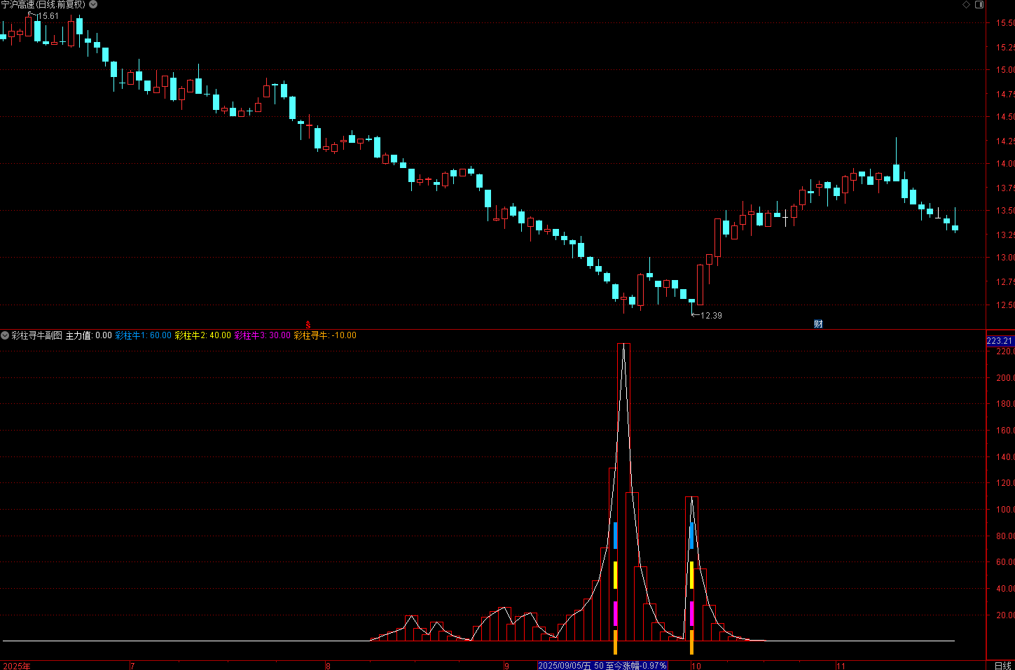 (通达信日进斗金之〖彩柱寻牛〗副图/选股指标 彩柱底部寻时机)