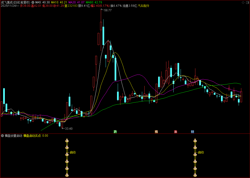 价量配合 & 非极值位 —— 连续两日阳线、今日涨幅有力度(≥1.8%),且开/收盘都不是 40 天内最高价、当日量不是近 35 日最高量 —— 即“稳健突破、有持续性、不是在极限位赌运气”。