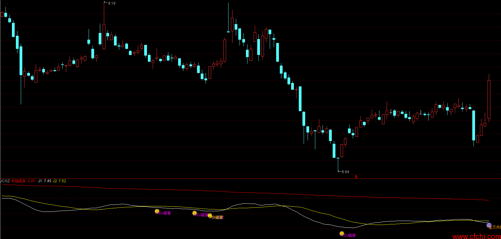 DRAWTEXT(B1,L-0.30,'MACD底背'),COLORWHITE;