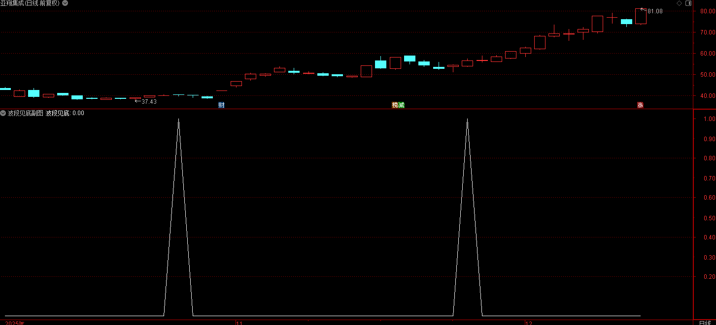 通达信波段见底指标,该公式是基于价格相对位置 + 均线交叉构建的波段抄底类指标,核心思路是通过计算价格在 19 周期内的相对位置,结合 EMA 均线的金叉信号,筛选出 “低位企稳回升” 的波段见底机会。