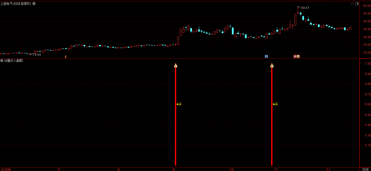 (通达信动量买入指标,该公式是基于MACD 动能 + 均线趋势 + 双线交叉拐点构建的中短线买入信号指)