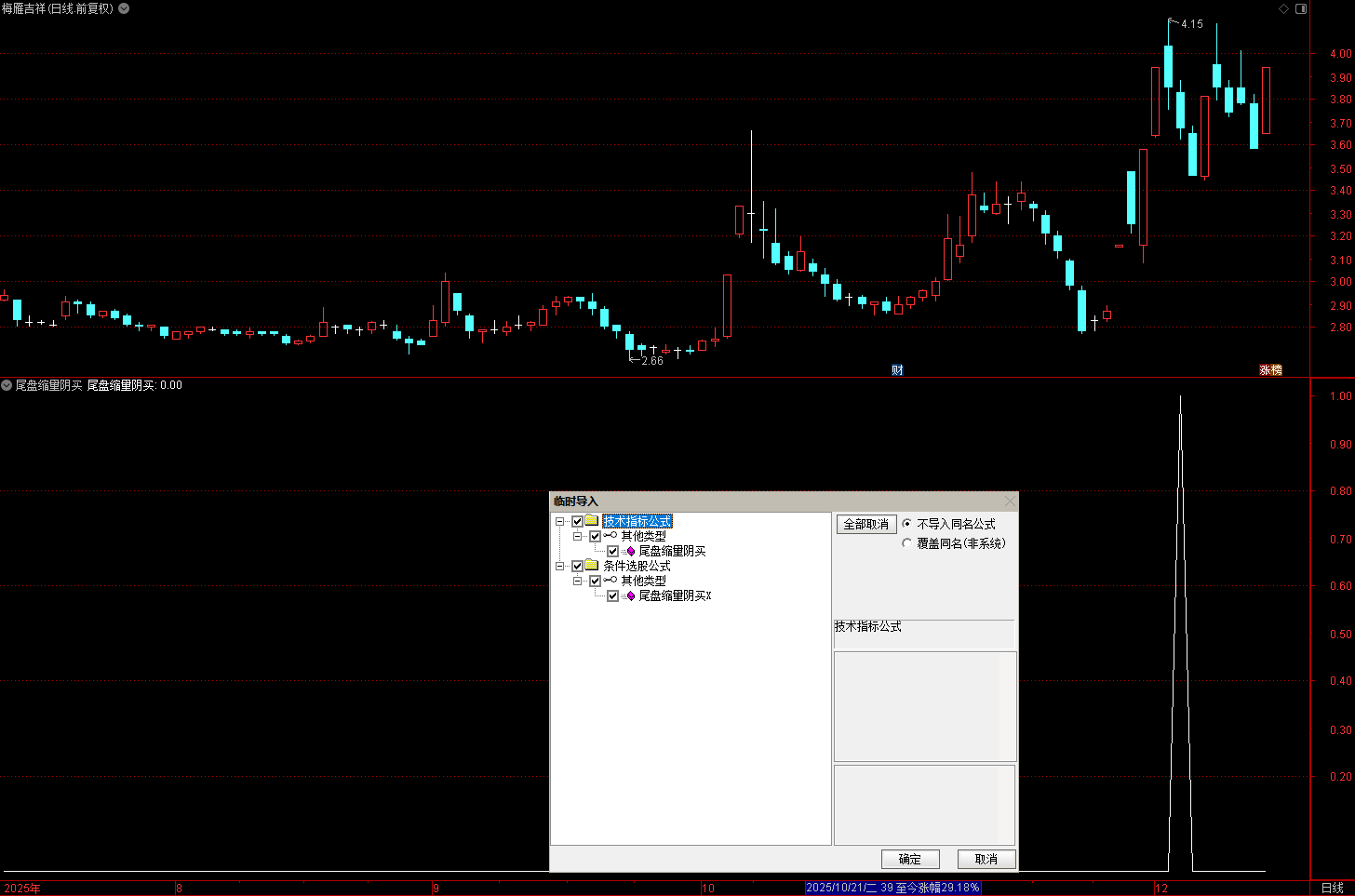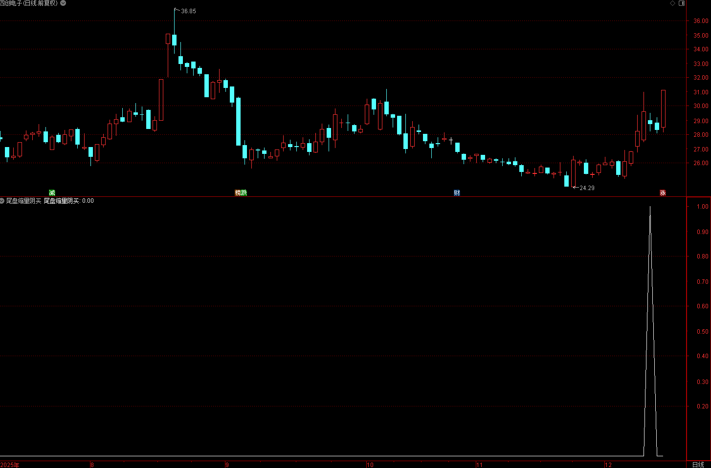 尾盘 14:30 后运行指标,筛选出 “尾盘缩量阴买” 信号标的,优先满足: