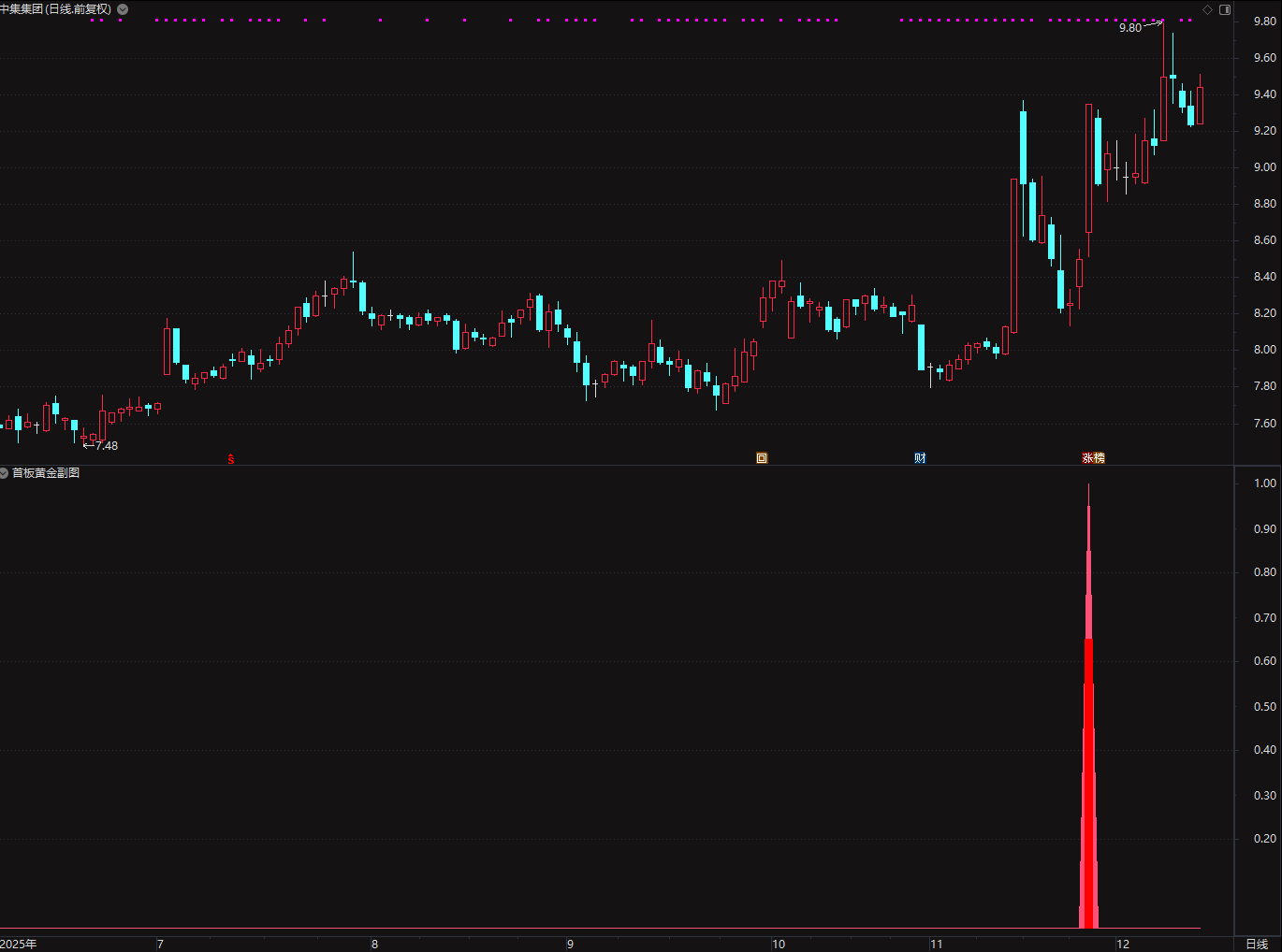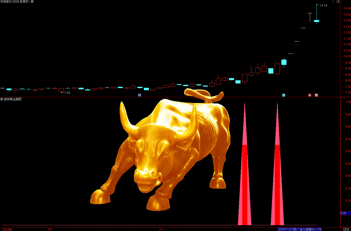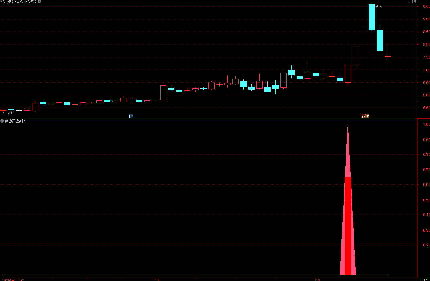 主要功能是分析股价走势,寻找在连续几个交易日调整之后可能出现的强势反弹或逆转的机会,特别是在股价显著上涨超过前一天收盘价一定比例时发出买入信号。“首板黄金”更侧重于发现那些经过短暂整理后有强烈上涨迹象的股票,为投资者提供及时的买入建议。
