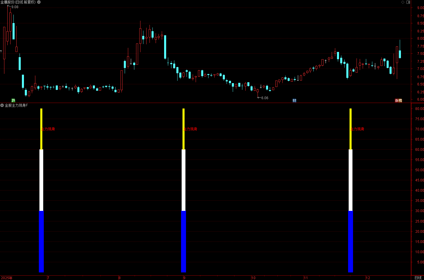 通达信金股主力现身指标,本指标基于经典 KDJ 指标变形优化,聚焦 “主力资金介入的低吸买点”,
