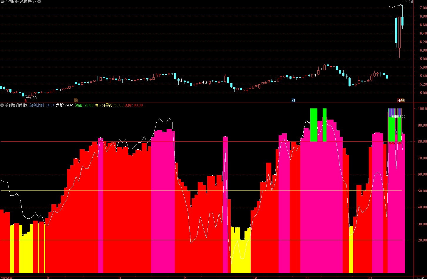 (通达信优化获利筹码副图指标 分析股票的涨跌趋势)