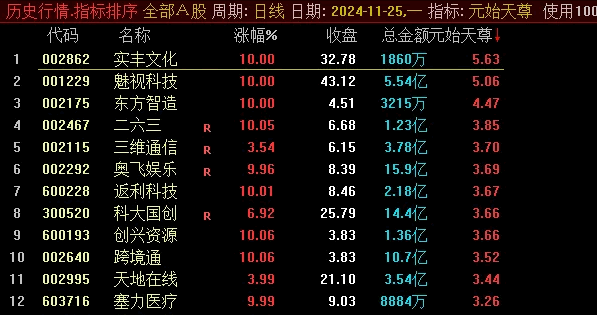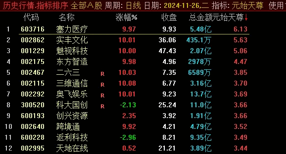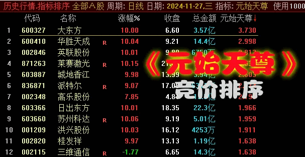 指标介绍:元始天尊为竞价排序指标,无论是首板,晋级,接力都可以抓到!