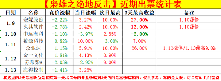 枭雄竞价之釜底抽薪:专门选昨日涨停(不限几连板)今天绿开的个股,绿盘低吸。每天出信号最多不超过3只,信号全天不变。