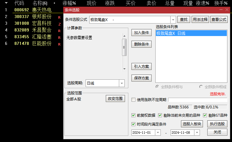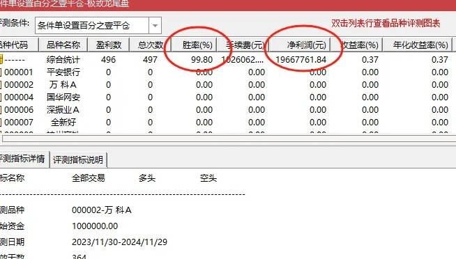 (通达信【极致龙尾盘】副图+选股指标,每天一个点,成功率99.8%,无未来函数,可回测)