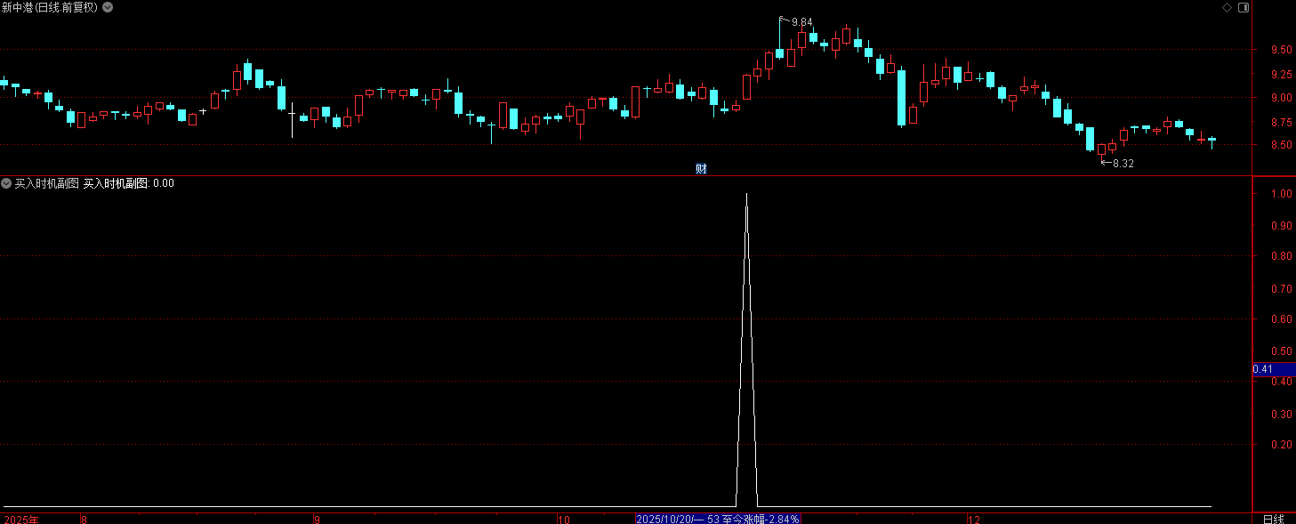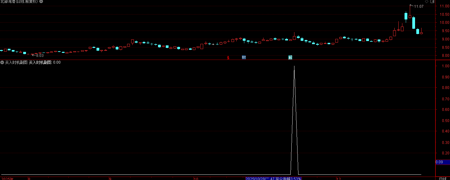 在日线K线图副图中,当出现“买入时机副图”信号标记时,代表当日个股同时满足所有核心条件,属于“长期趋势支撑+短期动能修复+均线突破”的三重确认买入时机。